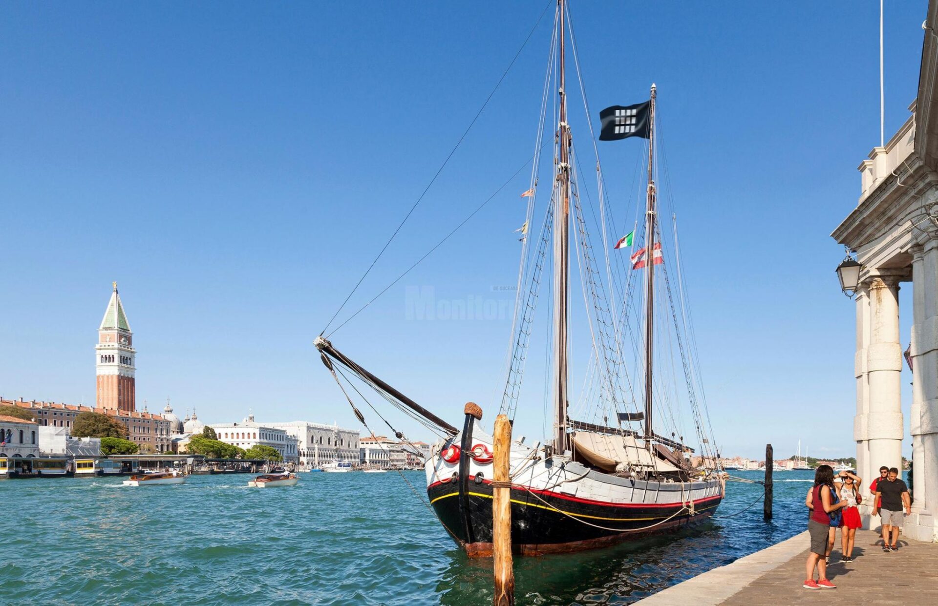 Expoziția este organizată în interiorul unei ambarcațiuni autentice venețiene