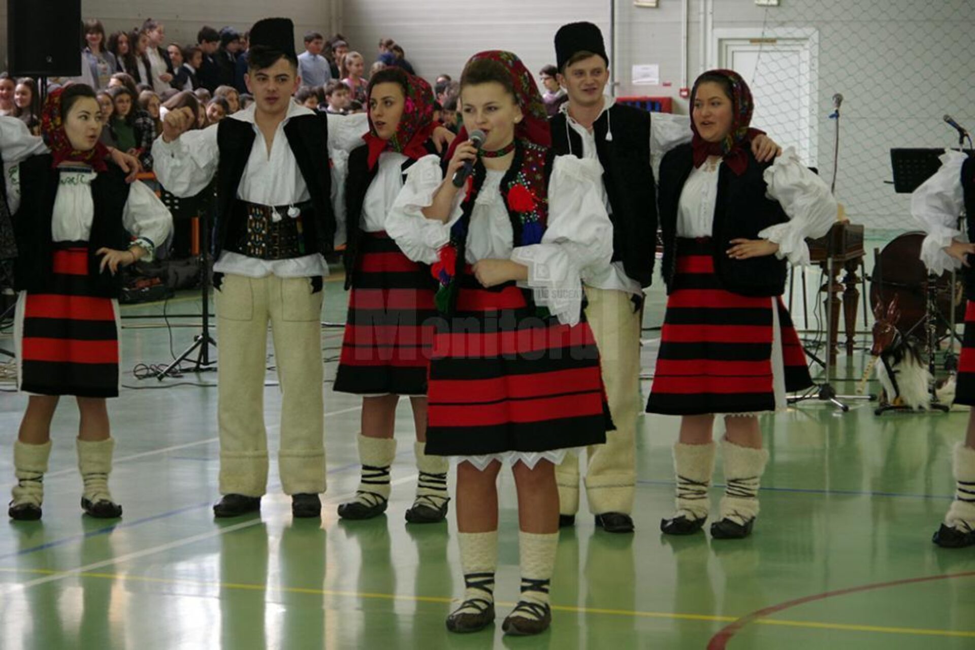 Opționalul de folclor este susținut și în județul Maramureș, începând de anul trecut, iar din acest an proiectul „10 pentru folclor” se bucură de sprijin și în județul Botoșani. Tocmai de aceea, în Sala de sport unde a avut loc spectacolul s-au aflat foarte mulți elevi, însoțiți și de profesori, care au ales să poarte ii românești, tradiționalele cămăși naționale, păstrate cu sfințenie de la părinți, bunici sau străbunici. Primii artiști care au oferit publicului un moment autentic au fost cei din Maramureș, Călineștenii Țării Maramureșului, care vor să păstreze și să ducă mai departe zestrea cea mai de preț a Țării Maramureșului. „Coconii din Călinești” au fost însoțiți la Suceava de directorul Asociației Călineștenii Țării Maramureșului, Voichița Costin. Îmbrăcați în costume populare tradiționale din Maramureș, tinerii au cântat, au jucat, au oferit un mini-spectacol pe placul tinerilor suceveni. Adresându-se copiilor suceveni, Voichița Costin a spus că ea nu a învățat despre folclor în școală, despre tradiții, despre originile noastre, pentru că pe atunci nu era această opțiune, dar ei, copiii de acum, au această șansă și nu trebuie să o rateze.