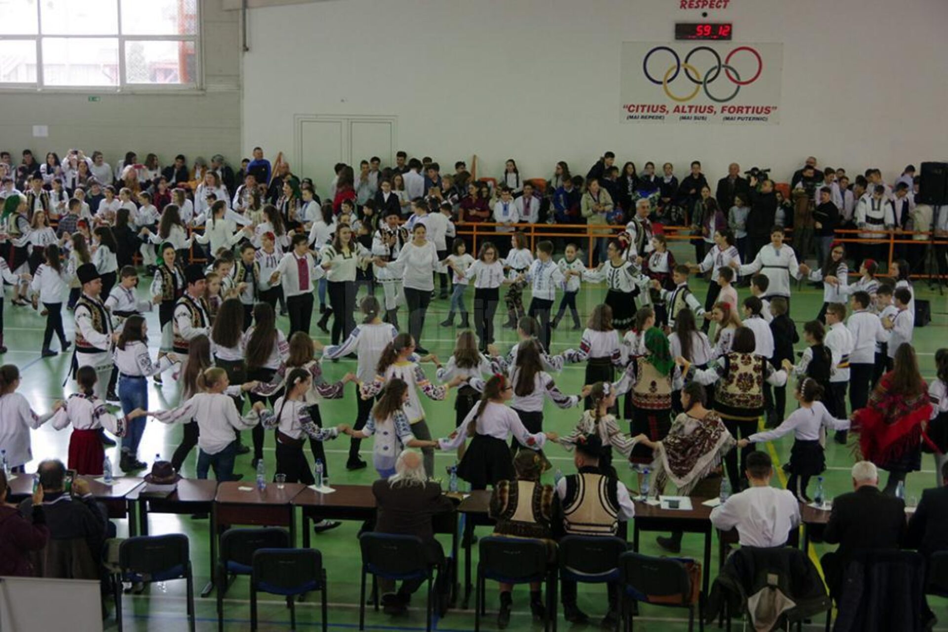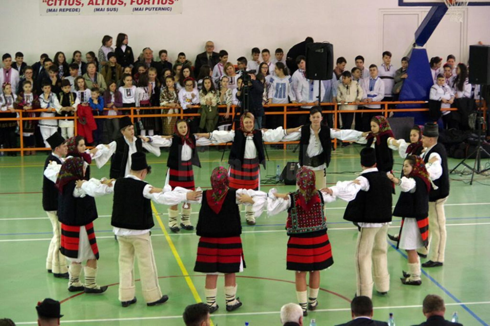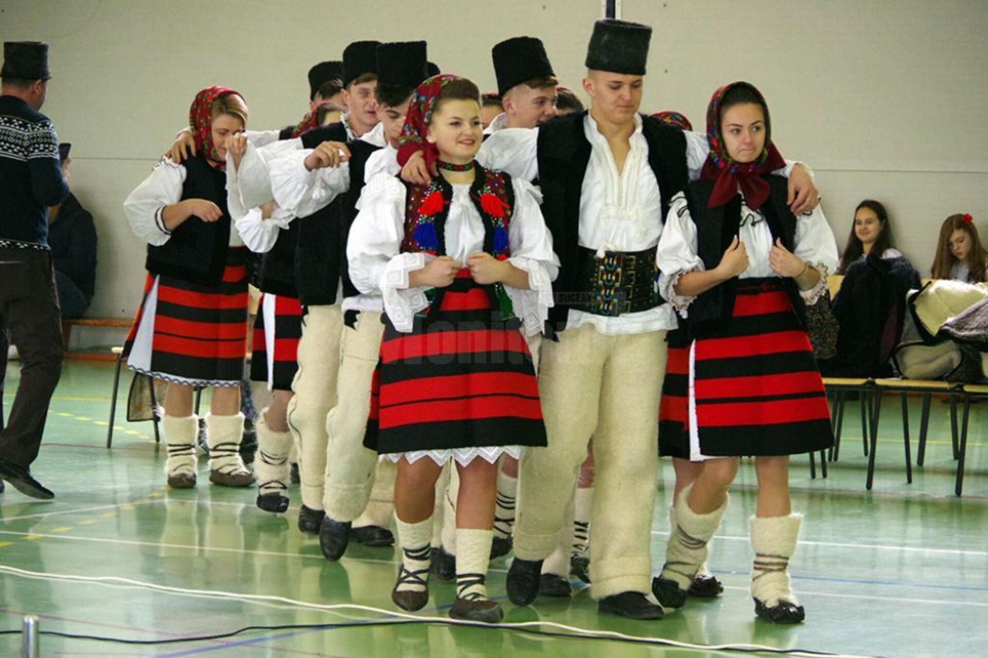 Un moment aparte al evenimentului de luni, 11 februarie, a fost prezentarea unui joc popular de către maestrul coregraf Costinel Leonte, alături de dansatorii profesioniști ai Ansamblului Artistic Profesionist ”Ciprian Porumbescu” Suceava. După două suite de dansuri prezentate publicului de dansatorii profesioniști ai Ansamblului Artistic Profesionist ”Ciprian Porumbescu” Suceava, acompaniați de Orchestra Ansamblului ”Ciprian Porumbescu”, maestrul coregraf Costinel Leonte a invitat toți elevii aflați la eveniment să se prindă în horă, alături de artiștii profesioniști. A fost o imagine foarte frumoasă, în care copii, tineri și vârstnici au dansat și s-au bucurat împreună, pe acordurile muzicii populare adevărate. Printre artiștii care au mai evoluat ieri în cadrul proiectului „10 pentru folclor”, la Școala Gimnazială „Miron Costin”, s-au numărat Alexandru Brădățan, Leonard Zamă, Grigore Gherman, Constantin Mândrișteanu, Angelica Flutur, Fetele din Botoșani, Andreea Haisan, Lucica Păltineanu.