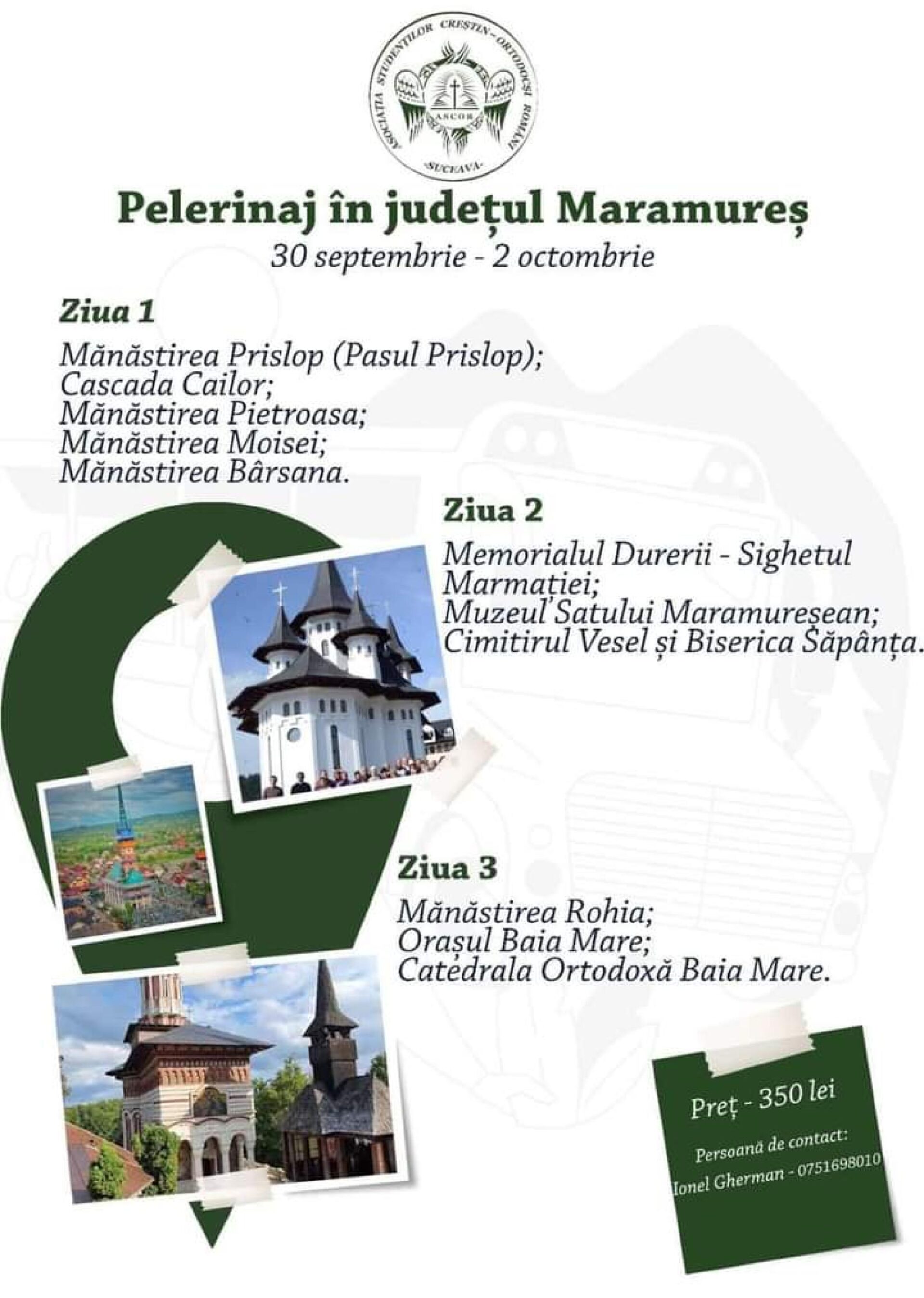 Cu binecuvântarea Înaltpreasfințitului Părinte Calinic, Arhiepiscopul Sucevei și Rădăuților, ASCOR Suceava organizează un pelerinaj în județul Maramureș, în perioada 30 septembrie – 2 octombrie.