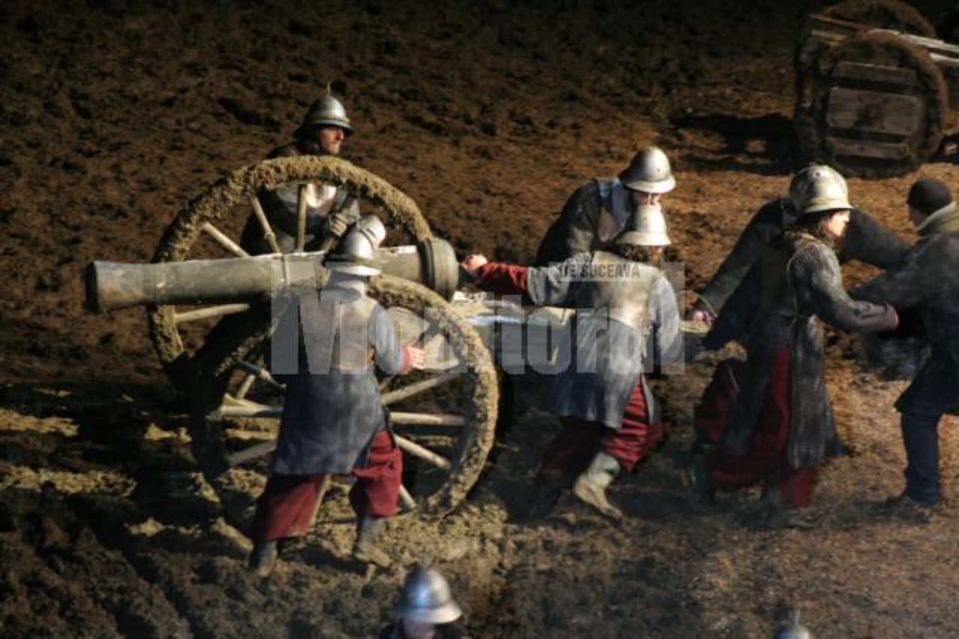 Scenele s-au derulat de la momentul înfrângerii și retragerii moldovenilor (cu o cascadorie spectaculoasă în care corpurile unor oșteni moldoveni au fost târâte în goana cailor dincolo de uriașa cortină întinsă peste șanțul de apărare), iar Ștefan cel Mare, ajuns sub zidurile Cetății Sucevei, și-a îndemnat oștenii să reziste. Postelnicul Șendrea s-a pregătit să facă față înfruntării cu dușmanul cu luptători adunați pe ziduri, cu arcuri și săgeți, cu bolovani și catran încins.