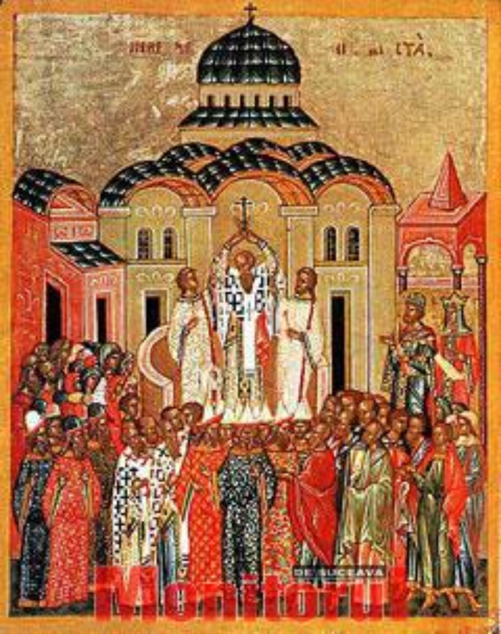 Pentru aceasta, gândind întru sine la puterea Celui ce a fost răstignit pe Cruce, și crezând că Acesta este Adevăratul Dumnezeu și întărindu-se cu Botezul împreună cu maică-sa, a trimis-o la Ierusalim ca să găsească Crucea lui Hristos. Și a aflat-o ascunsă, împreună cu celelalte două cruci, pe care fuseseră răstigniți tâlharii; și nu numai crucile, ci și piroanele le-au aflat. Neștiind împărăteasa care ar fi Crucea Domnului, s-a arătat aceasta prin minune. O femeie văduvă moartă, de care s-a atins Crucea a înviat; iar celelalte două cruci ale tâlharilor nu au arătat nici un semn de minune. Atunci împărăteasa s-a închinat și a sărutat Crucea, împreună cu toată suita. Și neputând încăpea tot poporul să se închine s-a rugat ca măcar să o vadă. Atunci s-a suit Fericitul Macarie, patriarhul Ierusalimului, și a înălțat deasupra amvonului Cinstita Cruce, și văzând-o poporul, a început a striga: „Doamne miluiește!”. Și de atunci a început a se ține sărbătoarea Înălțării Cinstitei Cruci.