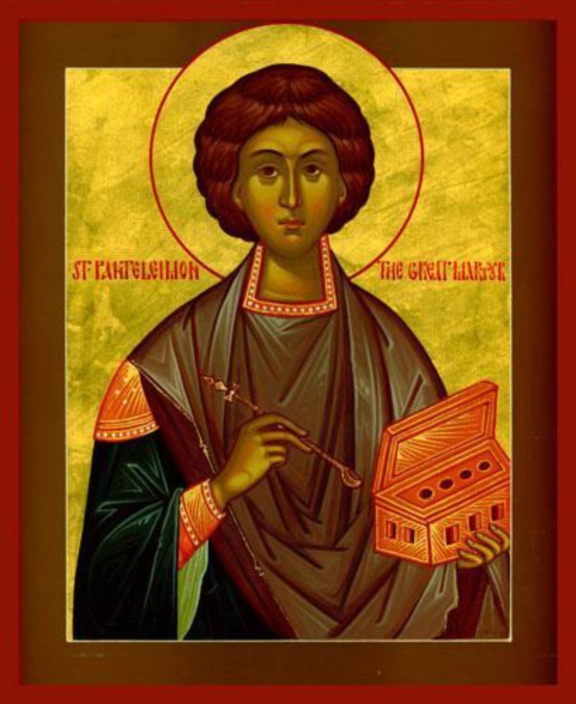 Sfântul Mare Mucenic și Tămăduitor Pantelimon a trăit în vremea împăratului Maximian Galeriu și era originar din cetatea Nicomidiei. Tatăl său era păgân, iar mama sa creștină. Va primi numele de Pantoleon care înseamnă „cel în toate puternic ca un leu”.