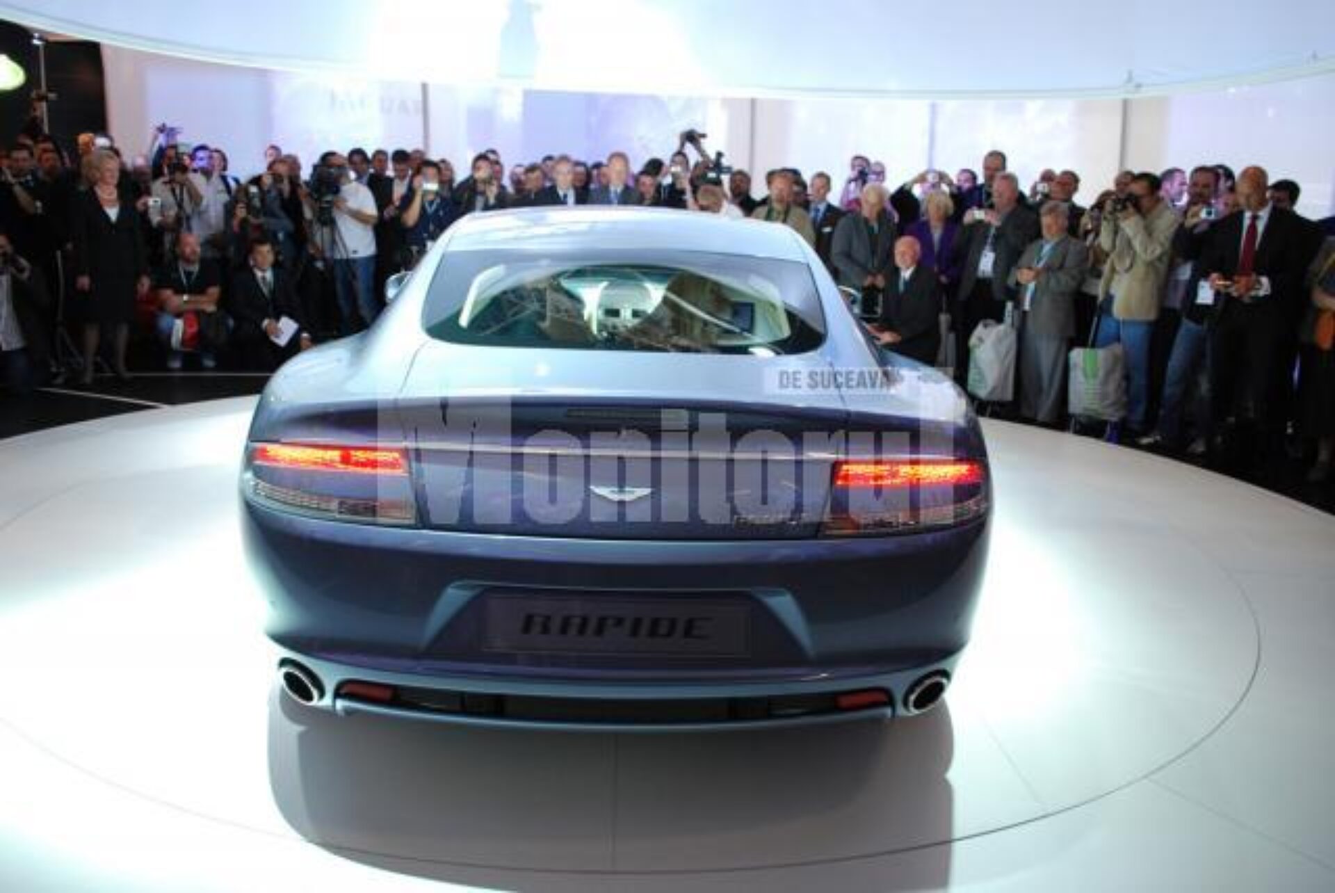 Odată cu Salonul Auto de la Frankfurt britanicii au marcat intrarea oficială a noului sedan Rapide, model cu veleități de supercar și dotări de nivelul unei limuzine. După doi ani de pregătiri, Aston Martin poate răsufla ușurat, modelul său vine la timpul și momentul potrivit, înzestrat cu toate cele necesare pentru a face față concurenței. Rapide va oferi un acoperiș panoramic de mari dimensiuni, soluție care va face ca o cantitate importantă de lumină să inunde interiorul, motiv pentru care senzațiile trăite la bord vor fi amplificate.