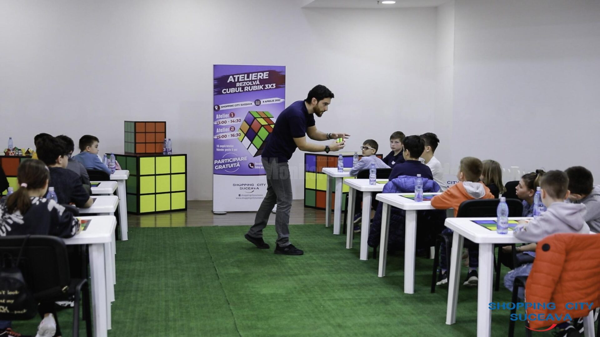 Sâmbătă, 14 mai, Shopping City Suceava organizează o nouă serie de ateliere pentru copiii care își doresc să învețe să descifreze misterele cubului Rubik 3×3. Atelierele sunt gratuite și se adresează tuturor pasionaților de puzzle-uri, cu vârsta de peste 7 ani.