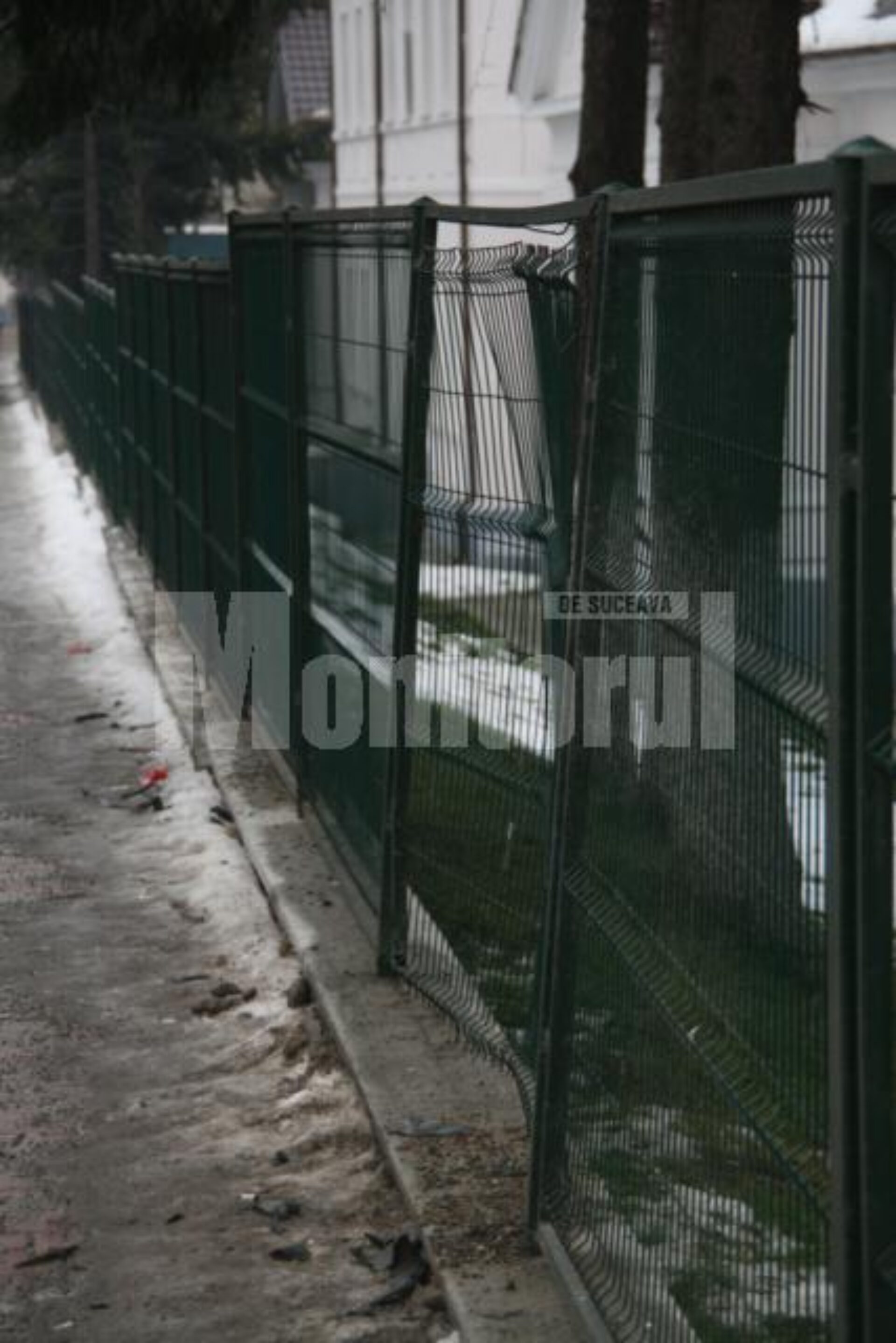 Un autoturism Logan a derapat, a culcat la pământ un stâlp de iluminat și s-a oprit în gardul spitalului.
