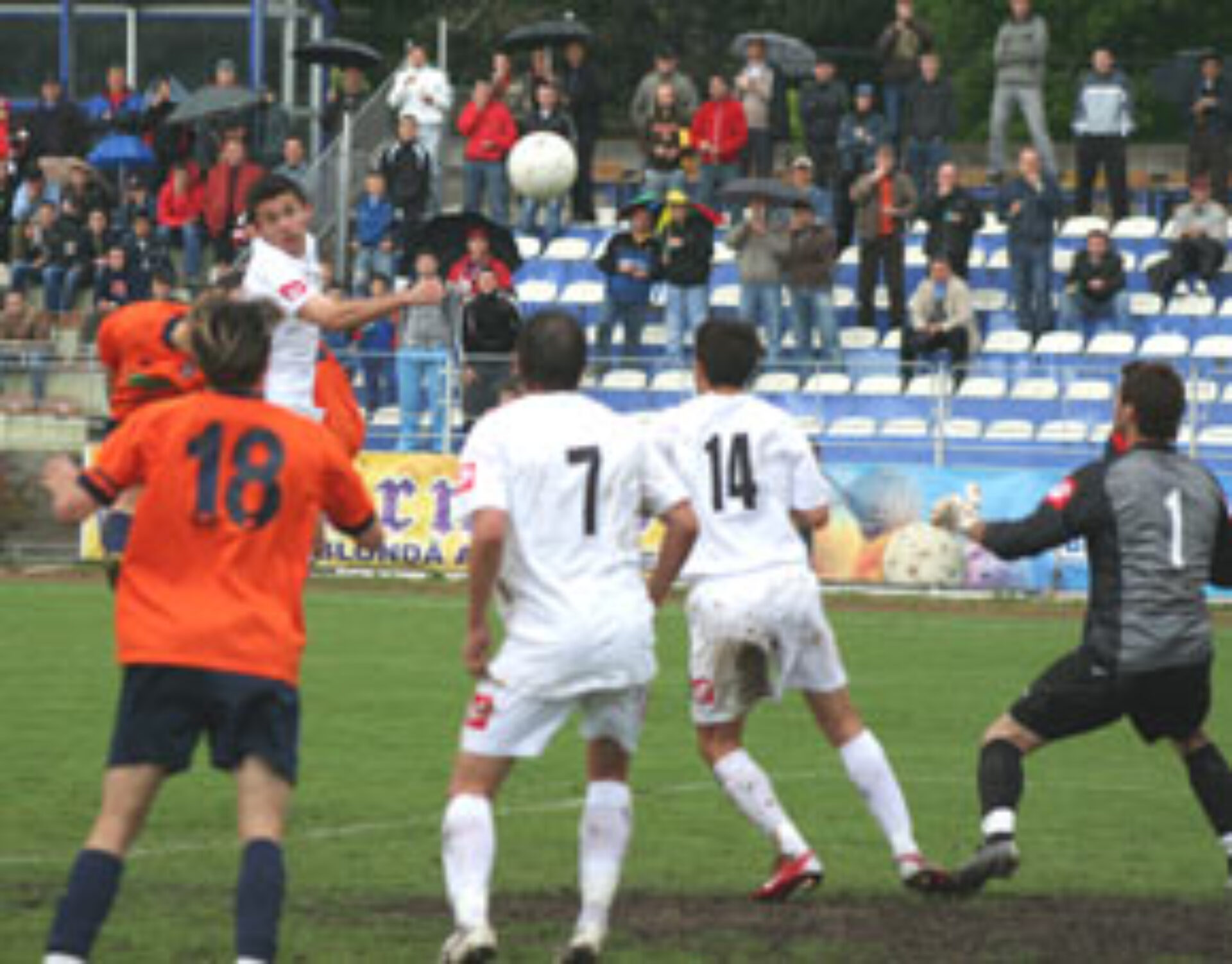 După un început de joc echilibrat, tentativa sucevenilor de a obține cele trei puncte vitale pentru salvarea de la retrogradare a părut a fi ușurată de gestul copilăresc al „studentului” Curelea, care a fost eliminat încă din minutul 18 pentru că l-a înjurat pe centralul Dan Burcă. Dar n-a fost deloc așa, pentru că oaspeții au continuat să joace dezinvolt și au deschis scorul în minutul 24 prin Ferfelea, care l-a învins pe Rohețki cu un șut la firul ierbii din afara careului de 16 metri. Impulsionați de cei 4.000 de spectatori aflați în tribunele stadionului Areni, elevii lui Marian Pană a reacționat prompt și au reușit egalarea 6 minute mai târziu. Mitruc, cel mai bun om al gazdelor în întâlnirea de ieri, a centrat perfect din lovitură liberă, iar Roman a marcat cu o lovitură de cap trimisă pe centrul porții. Fără a domina autoritar, Cetatea și-a mai creat două ocazii de gol până la pauză prin Sitaru (șut bun de la 30 de metri) și Berezoschi, reluare pe spate care a trecut puțin pe lângă poartă. Partea secundă a început cum nu se poate mai prost pentru formația gazdă. Fostul echipier al lui Dinamo Kiev, Irimia, a pătruns nestingherit până în careul sucevean, a centrat pe jos pentru Ferfelea, care venit din alergare a catapultat mingea direct sub transversală. Neavând de ales, sucevenii au început din nou cursa de urmărire. Însă fără luciditate. Mai întâi Stoica a țintit bara transversală porții apărată de Popescu cu un șut din colțul careului mare. În minutele 62 și 68 Dicher a ratat de puțin ținta din poziții foarte bune, pentru ca imediat, Roberto să-l țintească pe goal-keeper-ul bucureștean cu o lovitură de cap expediată de la doar 4 metri. Sarabanda ratărilor a continuat. În minutul 78 șutul lui Cososchi a fost deviat în bară de un apărător al Sportului, pentru ca mai apoi, Popescu să pareze cu greu torpila lui Huzuneanu. Insistența sucevenilor a fost răplătită cu 3 minute în final, atunci când Roberto a marcat din mijlocul meleului creat în careul mic bucureștean, după ce, în prealabil, tot brazilianul nimerise bara transversală. Finalul tensionat de partidă a făcut ca spiritele să cedeze, astfel că a fost nevoie de intervenția jandarmilor ca să-i calmeze pe jucătorii celor două formații. Una peste alta, Cetatea a irosit două puncte mari în ecuația salvării de la retrogradare. Regretele sunt cu atât mari când stai să te gândești că sucevenii nu au putut să profite de avantajul omului în plus de care au beneficiat 75 de minute, ba mai mult, au și încasat două goluri din tot atâtea șuturi pe poartă expediate de adversari. Cetatea a evoluat în formula Rohețki – Berezoschi, Mocanu, Cososchi – Roman, Sitaru, Mitruc (78 Huzuneanu), Stoica – Andrieș (63 Prisacă), Roberto, Dicher. Sportul Studențesc a jucat în alcătuirea Popescu – Ciupe, Rațiu, Secăreanu, Dedu – Oae (86 Târnăcop), Irimia, Nicola (38 Patriche, 63 Ghinga), Ferfelea – Gheorghe, Curelea.