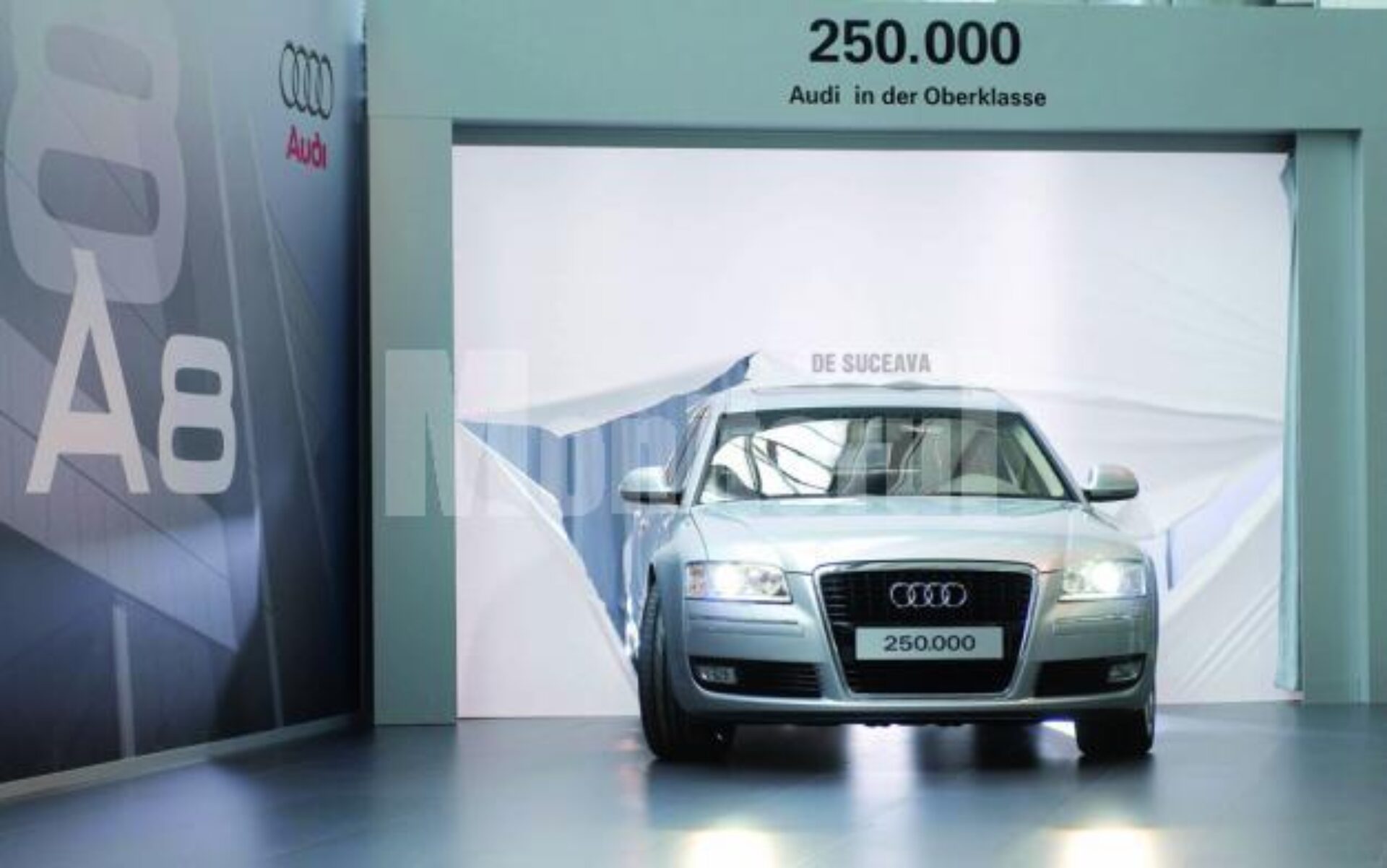 Pe 26 mai de pe porțile uzinei din Neckarsulm a ieșit modelul A8 cu numărul 250.000. Mașina aniversară este o versiune cu ampatament mărit, A8L, de culoare gri metalizat și echipată cu motorul pe benzină de 2.8 litri.