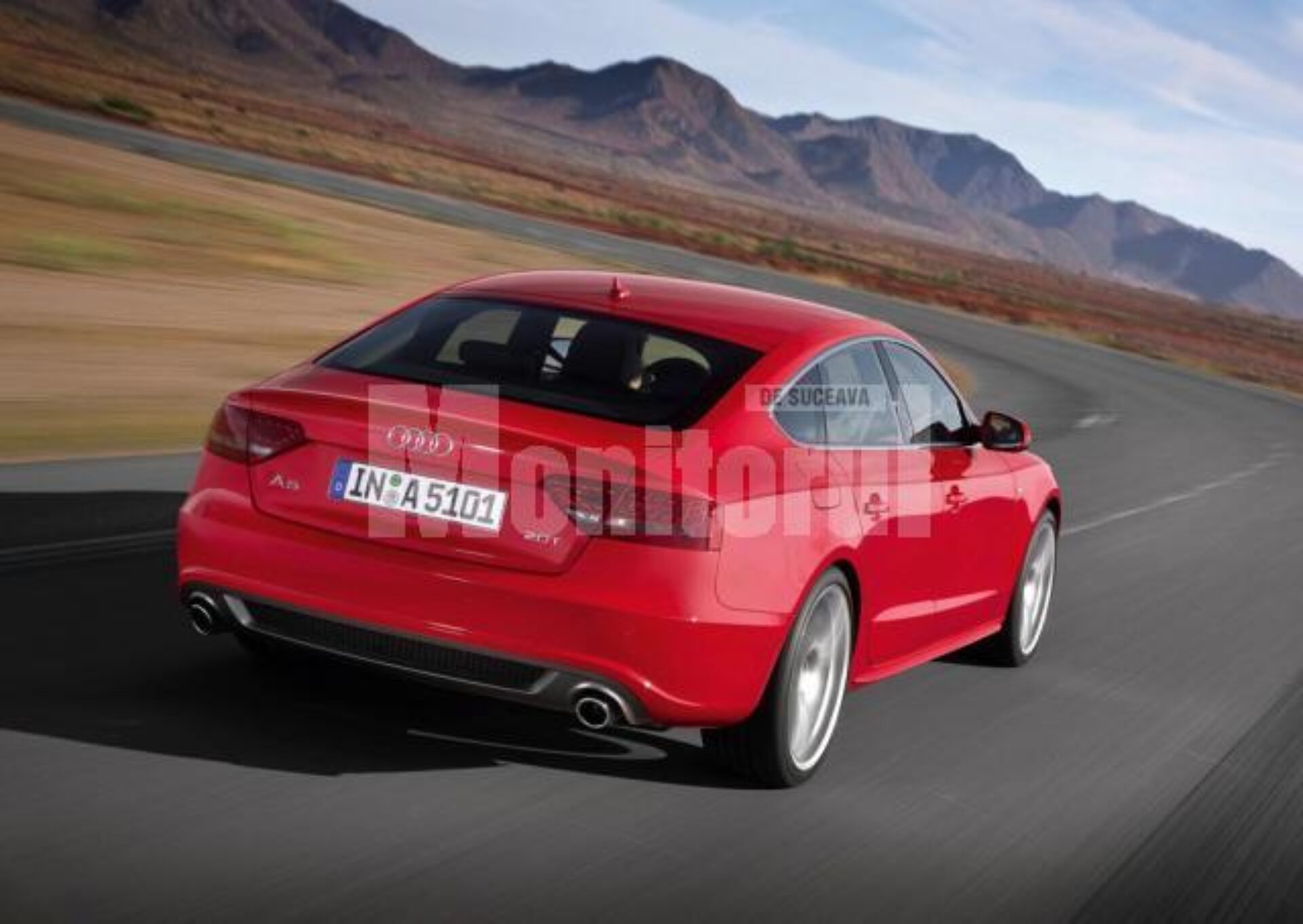 Audi va lansa luna viitoare cel de al treilea model din gama A5. Versiunea Sportback se va alătura modelelor existente, A5 coupe și A5 cabrio. Lansarea europeană va avea loc luna viitoare, după prezentarea oficială de la Frankfurt. Noul A5 Sportback va fi comercializat în România începând cu a doua jumătate a lunii septembrie, la un preț de pornire de 34.480 de euro cu TVA. Clienții vor putea opta pentru trei niveluri de echipare, Attraction, Ambiente și S-Line. Spre deosebire de restul modelelor A5, versiunea Sportback vine cu două uși în plus, un hayon inedit și un portbagaj mult mai generos, cu o capacitate de încărcare cuprinsă între 480 de litri – standard și 980 litri când bancheta este pliată. Designul rămâne tributar gamei A5, în schimb, nivelul de confort se situează puțin mai sus, grație ecartamentului, dar și ampatamentului mărit cu câțiva centimetri, acesta din urmă măsurând 2,81 metri.