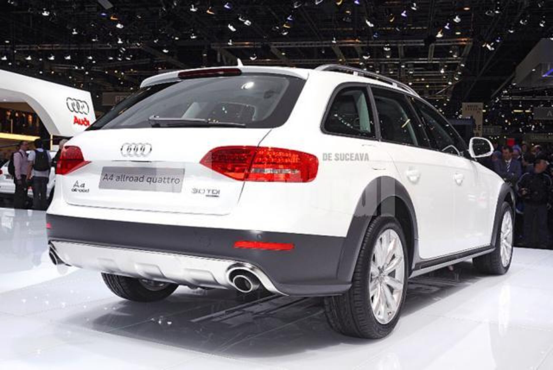 Audi a fost în centrul atenției cu numeroase premiere, una mai interesantă ca alta. Deși e greu de afirmat cine a fost vedeta standului, A4 Allroad a reușit să capteze atenția celor din jur, având în vedere succesul gamei A4 în general cât și evoluția față de modelul din care derivă. Noul Allroad se bazează pe structura unui model break, respectiv versiunea de caroserie Avant. Dispune de exact același nivel de confort, spațiu pentru bagaje, dotări și o parte din motoare. Garda la sol este mărită, pasajele roților sunt puse în evidență cu ajutorul unui material plastic de culoare închisă, iar grila motor cromată în întregime sunt câteva din elementele specifice acestui model. Bagajul dotărilor exterioare care individualizează versiunea Allroad mai include barele de amarare cromate, oglinzile laterale acoperite și ele cu plastic – în jumătatea inferioară – și scuturile de protecție din oțel care previn eventualele lovituri în baia de ulei și rezervorul de combustibil. Tracțiunea se realizează permanent pe toate roțile, asigurând mobilitate maximă pe orice suprafață de rulare. Un diferențial Torsen trimite cuplul motor în proporție de 40% punții față și 60% punții.