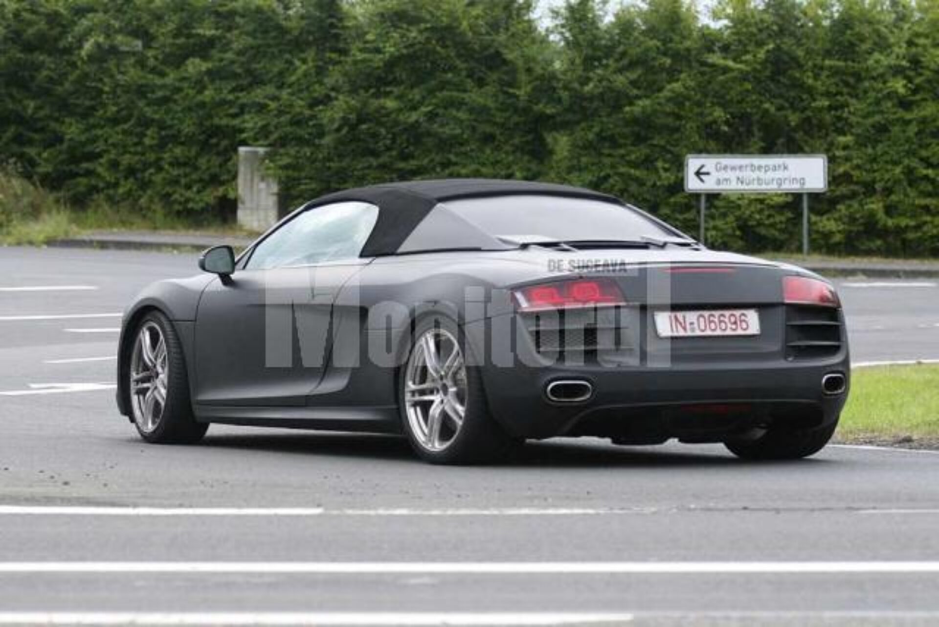 Conform unor oficiali ce lucrează la departamentul de dezvoltare, Audi va lansa în toamna anului viitor versiunea cabrio a sportivei R8. Decapotabila își va face debutul la Salonul Auto de la Paris și va păstra caracteristicile de design și o greutate destul de apropiată modelului din care derivă: 4,40 metri lungime și 1,30 metri înălțime, 1.700 kg. Propulsia este încă o necunoscută, dar există mai multe opțiuni: V8 de 420 cai putere și unitatea V10 de 500 cai putere ambele pe benzină sau un turbodiesel V12 de 600 de cai putere.