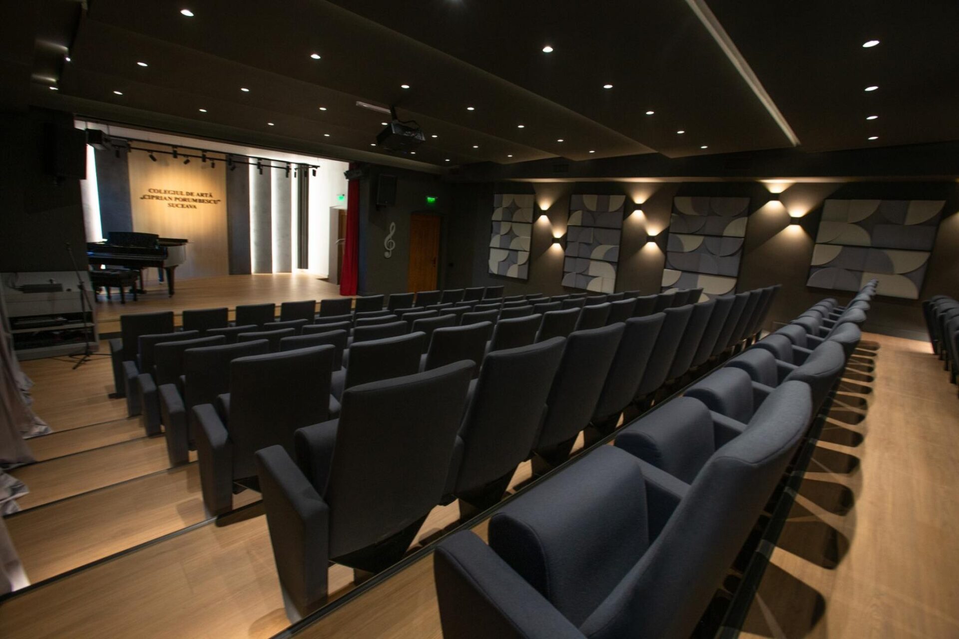 Lucrările au început odată cu vacanța de vară, în iunie 2025, pentru a respecta programul repetițiilor și al orelor de curs. În cele șase luni care au urmat, spațiul a fost refăcut complet, de la pardoseală și finisaje interioare, până la instalațiile electrice, climatice și echipamentele de sonorizare. În prezent, auditoriumul „Ion Carp Fluerici” are o capacitate de 99 de locuri și este considerat cea mai modernă sală de spectacole din municipiul Suceava.