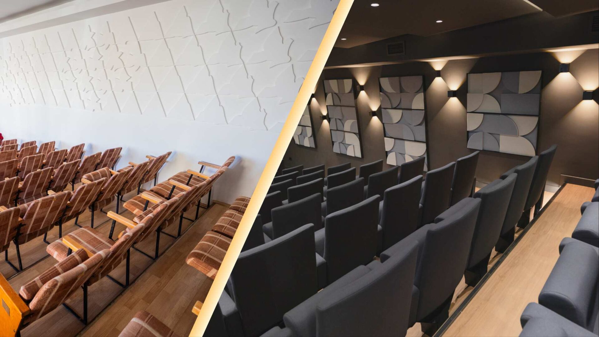 Procesul de modernizare a vizat fiecare element esențial pentru buna funcționare a unui spațiu dedicat culturii și evenimentelor educaționale. Pardoseala a fost înlocuită integral, cu sprijinul EGGER, pentru a asigura stabilitate. Finisajele pereților au fost refăcute complet și pregătite pentru integrarea elementelor acustice. Instalațiile electrice și cele destinate climatizării au fost reconfigurate pentru a permite utilizarea sălii în regim intens.