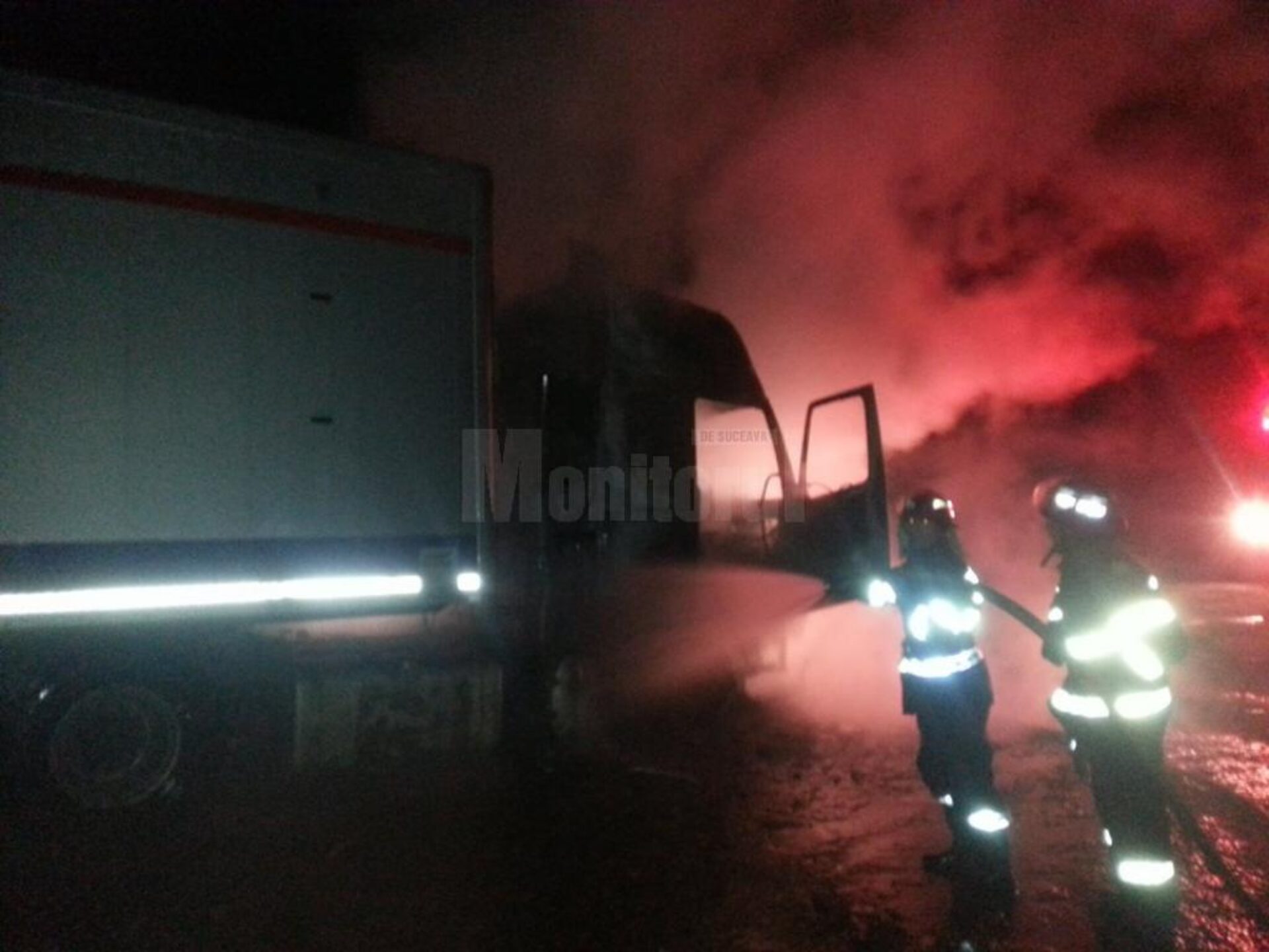 Pompierii militari ai Gărzii de Intervenție Gura Humorului, împreună cu lucrători ai Serviciului Voluntar pentru Situații de Urgență Ostra, au intervenit în noaptea de luni spre marți cu două autospeciale pentru localizarea și lichidarea unui incendiu izbucnit la un autotren, pe raza comunei Ostra, DJ 177A. Incendiul a fost anunțat prin apel la 112 la ora 3.18.La sosirea echipajelor, ardea capul tractor și exista pericolul de propagare la remorca încărcată cu deșeuri lemnoase.Incendiul a fost lichidat la ora 5:05.Au ars elemente combustibile din capul tractor și documente aflate în cabină. S-au degradat instalația electrică și cea pneumatică ale vagonului.„Cauza probabilă de izbucnire a incendiului a fost un scurtcircuit produs la un cablu electric defect”, se precizează în comunicatul pompierilor.Nu s-au înregistrat victime, iar pompierii au salvat remorca autotrenului, cu încărcătura aferentă.