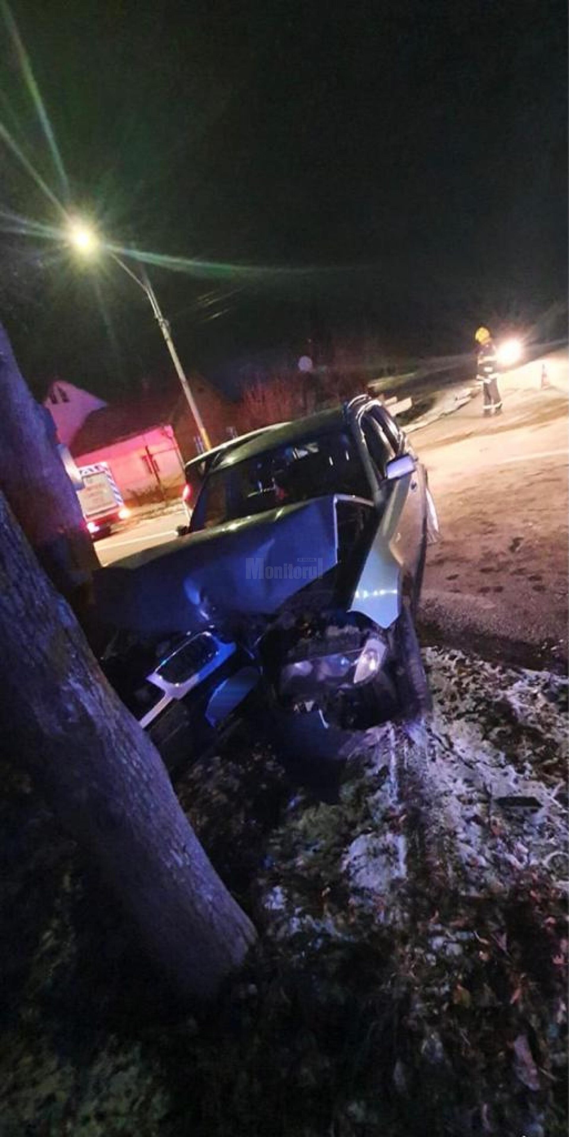 O mașină a intrat într-un copac în zona Cimitirului Pacea din municipiul Suceava, la intersecția drumului spre Cetatea de Scaun a Sucevei cu drumul spre satul Lisaura. Accidentul a avut loc miercuri seară.