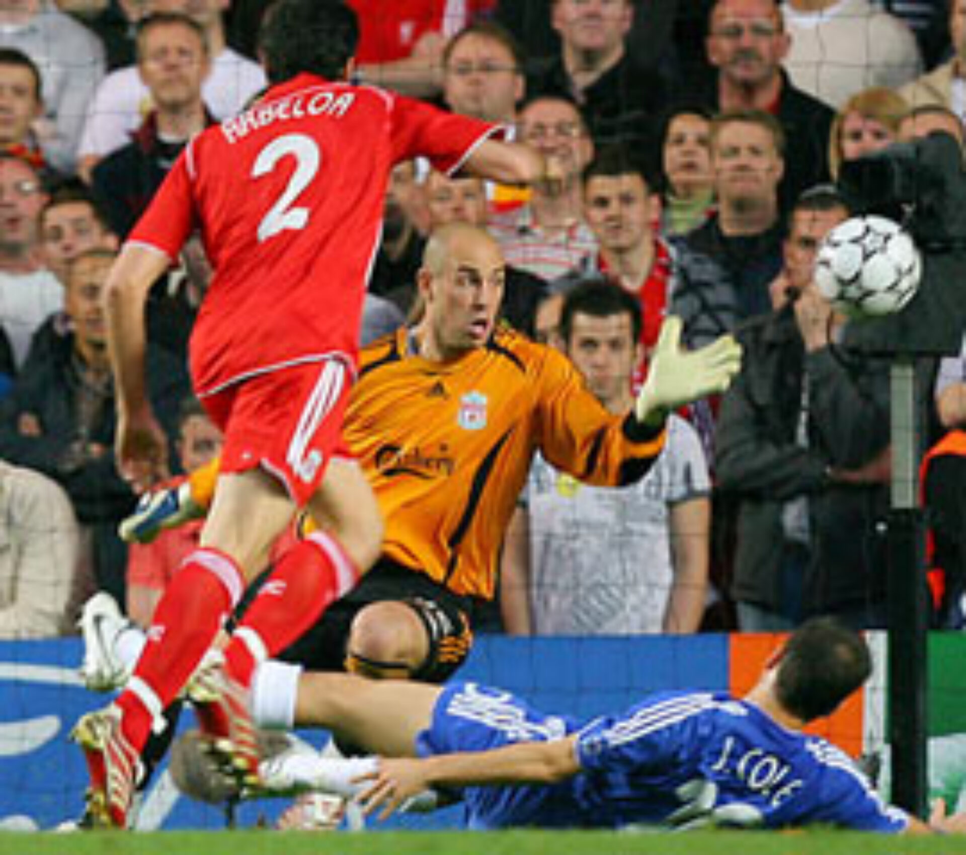 Echipa Chelsea Londra a învins, miercuri, cu scorul de 1-0 (1-0), formația Liverpool, într-un meci disputat pe stadionul Stamford Bridge, în prima manșă a semifinalelor Ligii Campionilor. Unicul gol al meciului a fost marcat de Jose Cole, în minutul 29. Învingătoarea dublei manșe va obține calificarea în finala Ligii Campionilor, care va avea loc, la 23 mai, pe stadionul Olimpic din Atena, unde va fi considerată, din considerente administrative, echipa oaspete. „Noaptea în care vrăjitoria lui Rafa a pierdut în fața lui Mourinho și a magicilor săi «blues»”, a titrat Daily Mirror. Publicația, care și-a intitulat un alt articol „Runda 1 pentru Jose”, scrie că Chelsea a fost, miercuri, mai puternică, mai hotărâtă și mai sigură pe ea și pe planul de joc pe care îl avea. „Avantaj Chelsea, avantaj Jose Mourinho. Golul lui Joe Cole din prima repriză au fost o slabă recompensă pentru o seară în care Chelsea ar putea simți că ar fi putut să obțină un avantaj mai mare. Cu Didier Drogba magnific, John Terry și Ricardo Carvalho imenși și Liverpool doar amenințând când Benitez l-a adus pe Peter Crouch de pe bancă, a fost o seară europeană în care Mourinho a câștigat dreptul de a se lăuda mai mult decât spaniolul (n.r. – Rafael Benitez, antrenorul echipei Liverpool)”, notează jurnalul englez. „Jackpot Joe, dar Mourinho reușește să se plângă de ceva” este titlul unui articol apărut în Daily Mail, care scrie că Chelsea se află „cu un picior în finala Ligii Campionilor”, însă tehnicianul Jose Mourinho s-a plâns din nou de arbitraj. „Golul din minutul 29 al lui Joe Cole de pe Stamford Bridge s-a dovedit a fi decisiv în prima manșă, dar Mourinho a afirmat că faptul că centralul Markus Merk nu a luat măsuri la hențul din minutul 49 al lui Alvaro Arbeloa l-ar putea costa calificarea”, notează Daily Mail. Ziarul notează că Arbeloa a comis henț în afara suprafeței de pedeapsă, după cum s-a putut vedea în reluările televiziunilor.