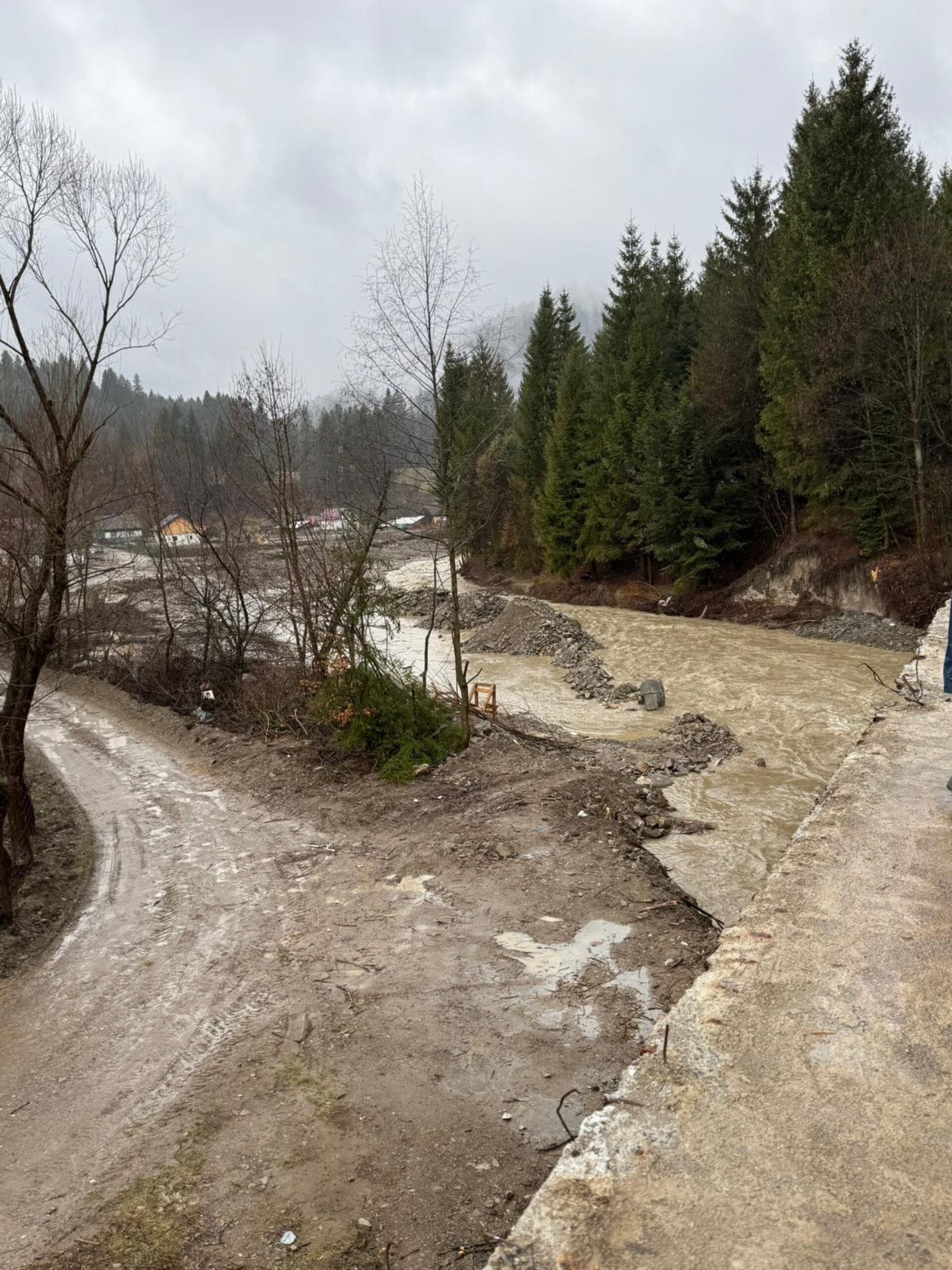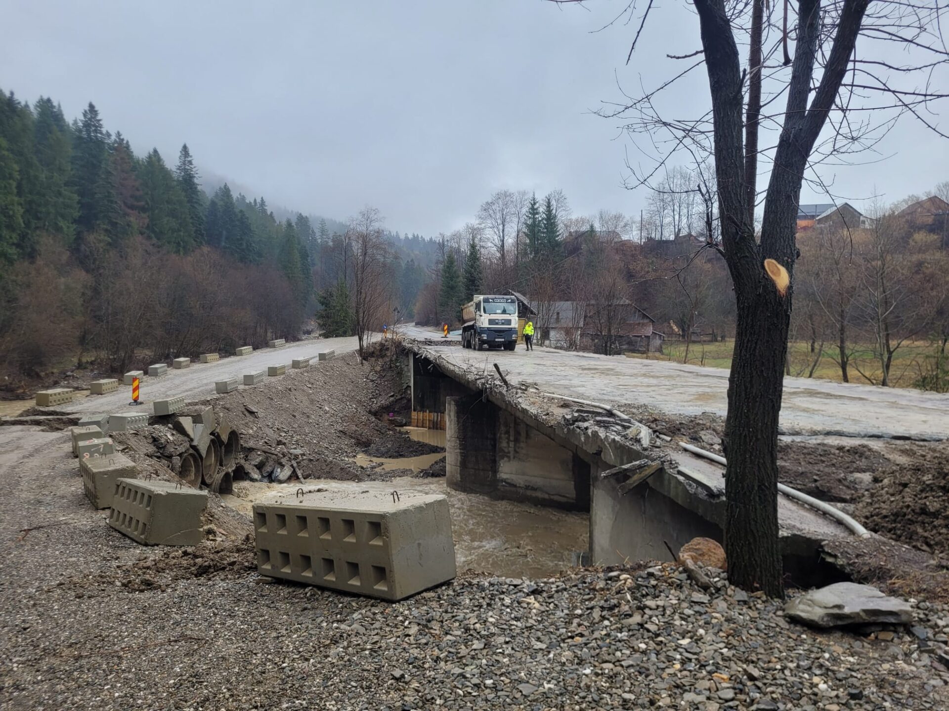 În acea zonă a fost semnalată o avarie la podul provizoriu, pe structură din tuburi de beton.