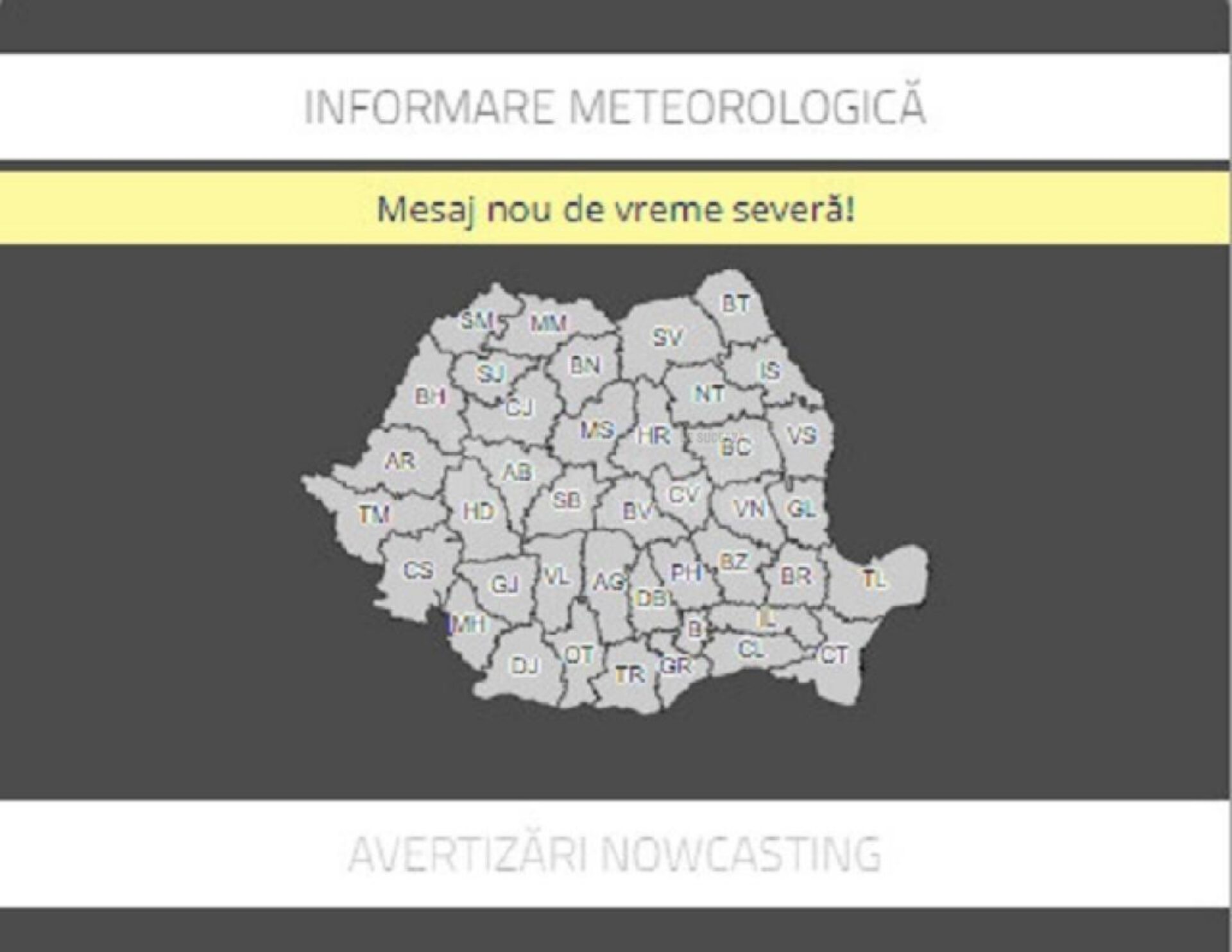În funcție de evoluția și intensitatea fenomenelor meteorologice, Administrația Națională de Meteorologie va actualiza informarea meteo prin avertizări de vreme severă imediată.