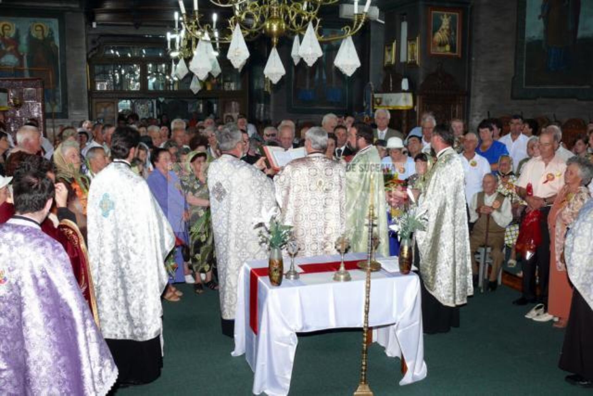 Un sobor de opt preoți, avându-l în frunte pe preotul protopop Constantin Patrolea, a oficiat slujba specială dedicată acestui moment, la care au participat, pe lângă miri și nași, copiii și nepoții celor aniversați, primarul Vasile Tofan, viceprimarul Gheorghe Aldea, consilieri locali, personalități ale culturii locale. După slujba de mulțumire și rostirea rugăciunilor, în curtea bisericii „Sfântul Ilie” a fost organizată o scurtă recepție, în cadrul căreia municipalitatea le-a oferit mirilor diplome, flori, și câte 200 de lei.