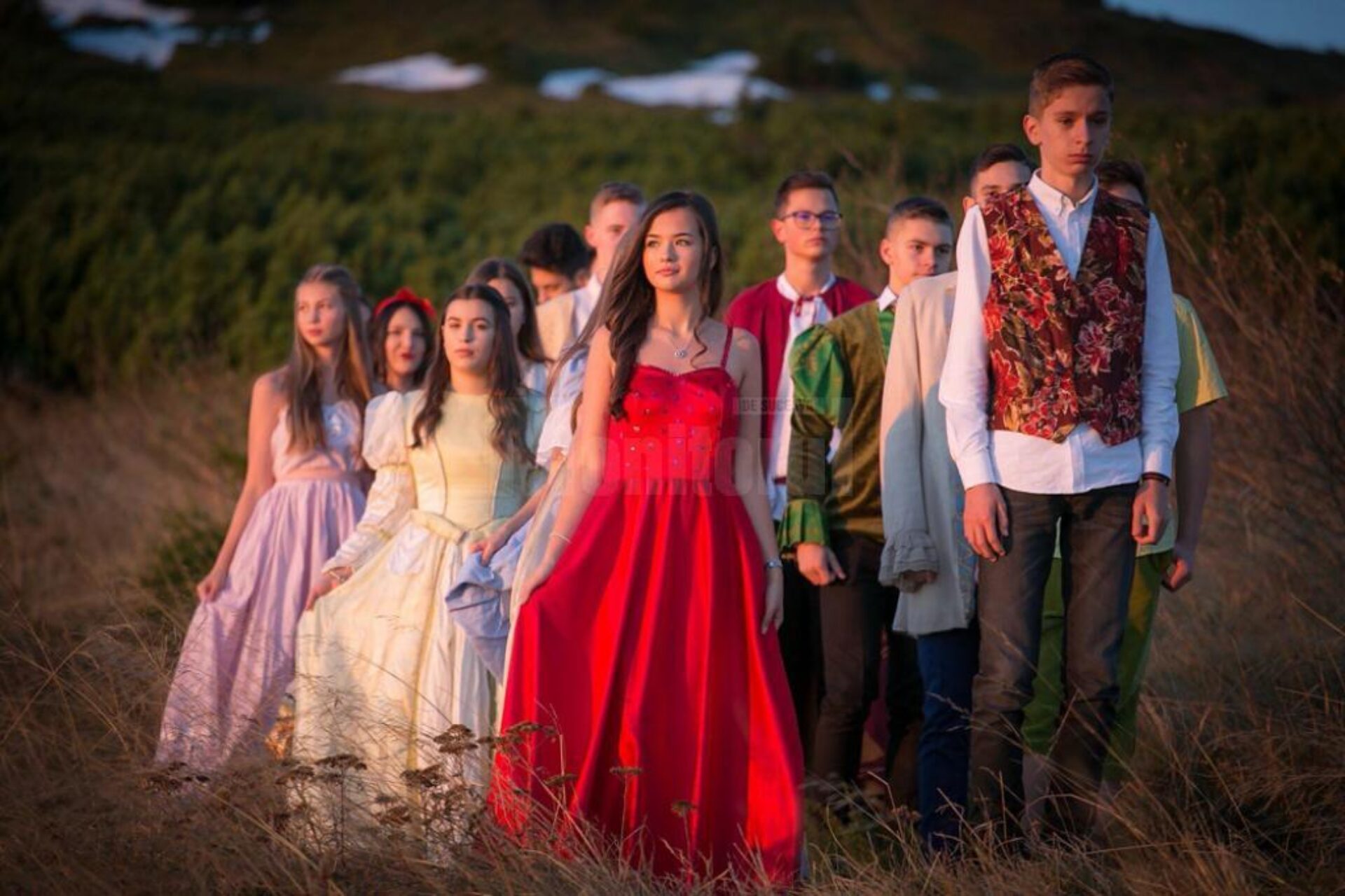 Nimic deosebit la prima vedere, dar cât de special chiar de la primele momente! Am vizionat noi, publicul, un film care ne-a purtat pe crestele munților, deasupra norilor, prin verdele crud al coniferelor, pe căi neumblate și aproape ireale, de parcă tărâmul „Wonderland” s-ar fi deschis pentru a fi explorat. Filmul a fost realizat de domnul profesor George Checheriță, diriginte la clasa a XII-a F, undeva în Ceahlău, pe la Dochia, cu bobocii în haine de poveste și intrați în pielea personajelor. Acolo i-am văzut urcând și coborând pe culmile magiei pe cei care urmau să intre în rolul personajelor de poveste: Peter Pan și Tinker Bell, Aurora și Filip, Rapunzel și Flynn Rider, Aladin și Iasmina, Belle și Bestia, Albă ca Zăpada și Prințul, Cenușăreasa și Prințul, Ariel și Eric.