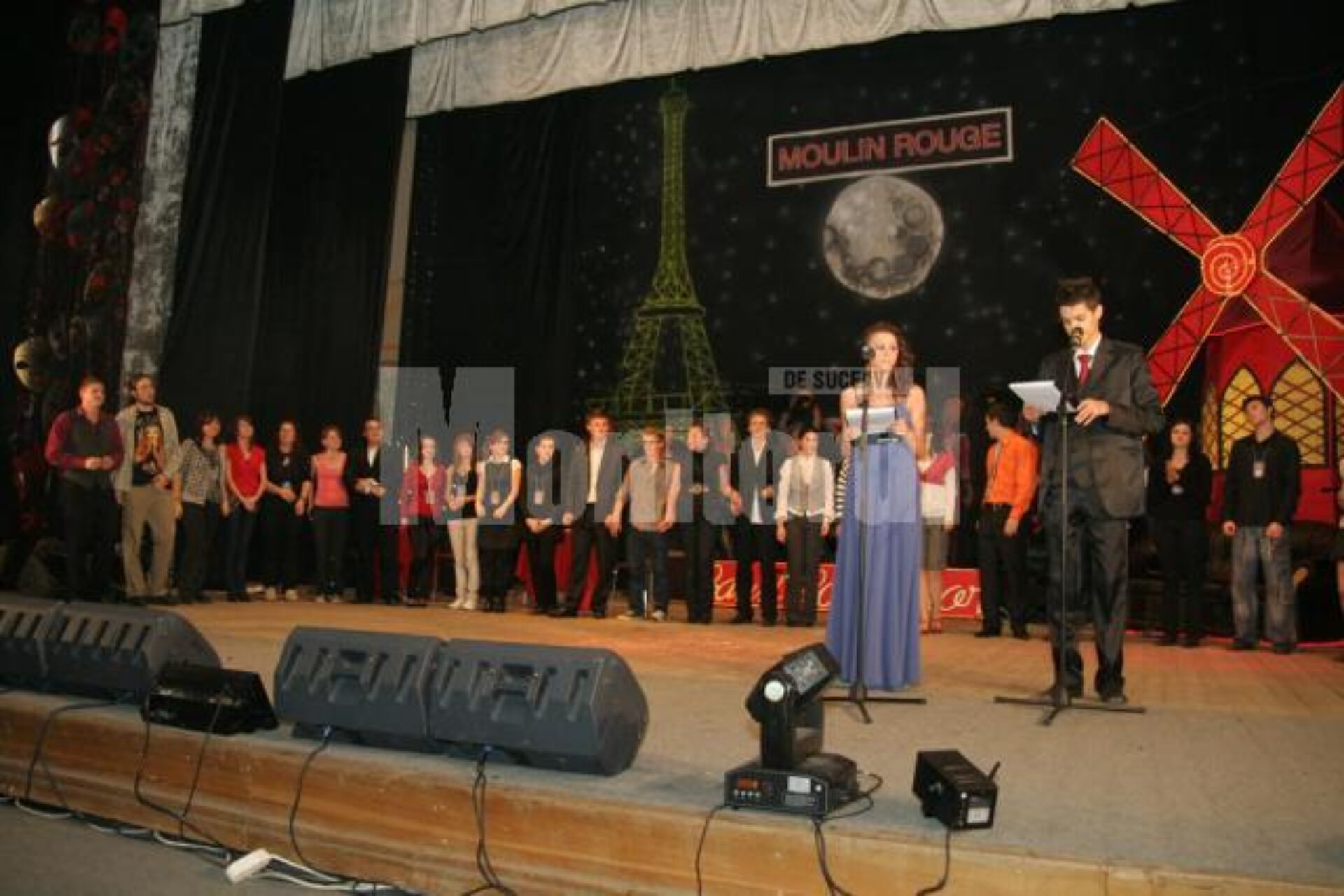 Clubul de noapte Moulin Rouge și atmosfera pariziană de la sfârșitul secolului al XIX – lea, cam acesta a fost cadrul în care Colegiul Național „Ștefan cel Mare Suceava” și-a ales, joi seară, cele mai frumoase boboace. Cu un decor strălucitor, din care nu a lipsit celebra moară de vânt, pictată în roșu aprins, dar și simbolul Franței – Turnul Eiffel, decor realizat de profesorul Adrian Frîncu, publicul, care a umplut până la refuz sala mare a Casei de Cultură Suceava, a fost încântat să descopere frumusețea și libertatea renumitului cabaret Moulin Rouge și a faimosul cancan. Totul a avut ritm, culoare. Elevii din clasele a XII-a, organizatorii Balului Bobocilor, au realizat, cu multă creativitate, o atmosferă boemă, încurajând libertatea de exprimare pe mai multe niveluri.