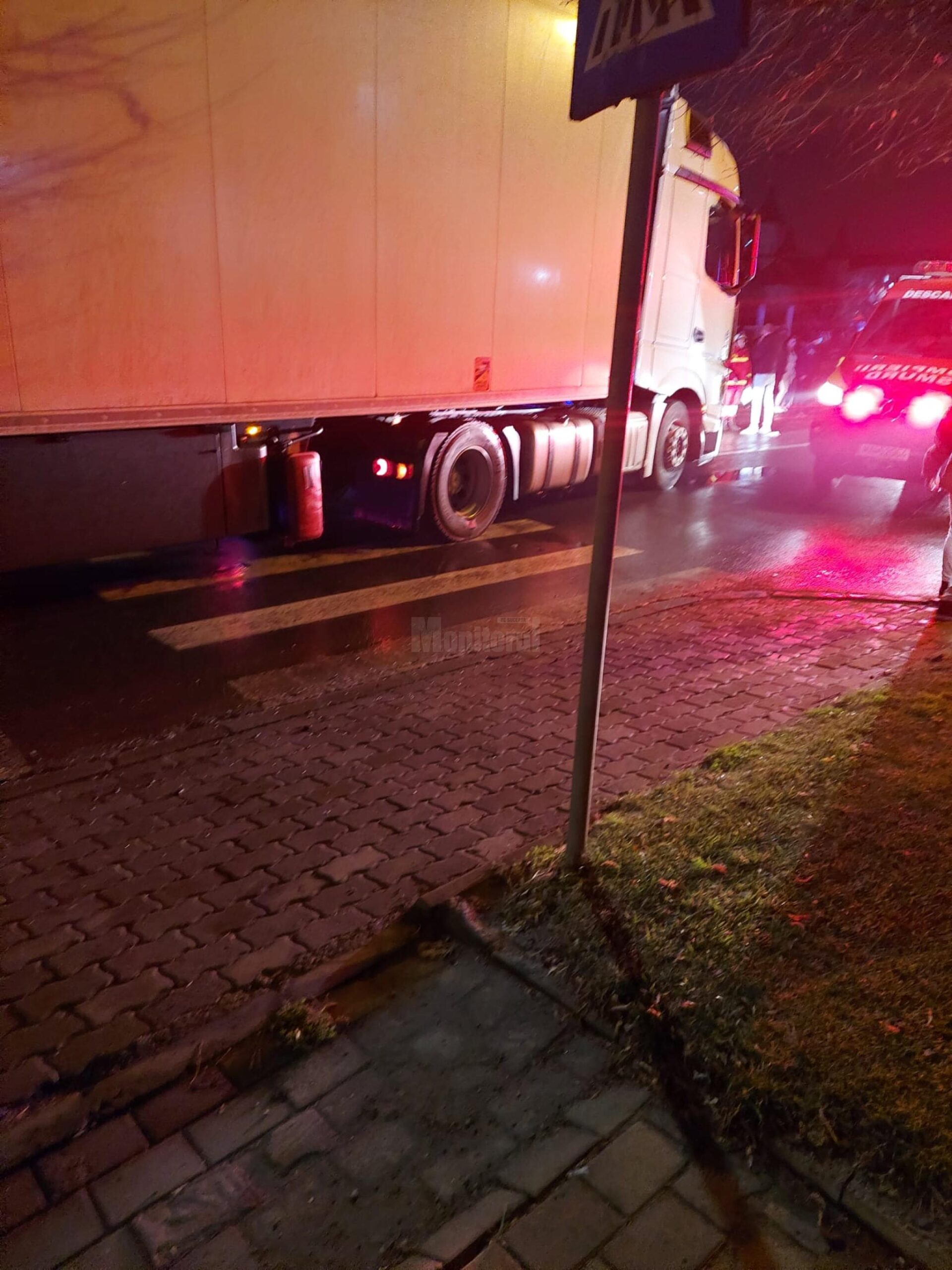 Un bărbat în vârstă de 52 de ani a fost accidentat de un tir, duminică seară, pe o trecere de pietoni de pe strada Gheorghe Doja din municipiul Suceava. Deși impactul a fost destul de violent, pietonul fiind proiectat la 5-6 metri distanță și lovindu-se puternic la cap, din fericire acesta nu a fost diagnosticat cu leziuni foarte grave. Accidentul s-a produs în jurul orei 19.00, în Burdujeni, în apropiere de intersecția străzii Gheorghe Doja cu strada Mircea Damaschin.