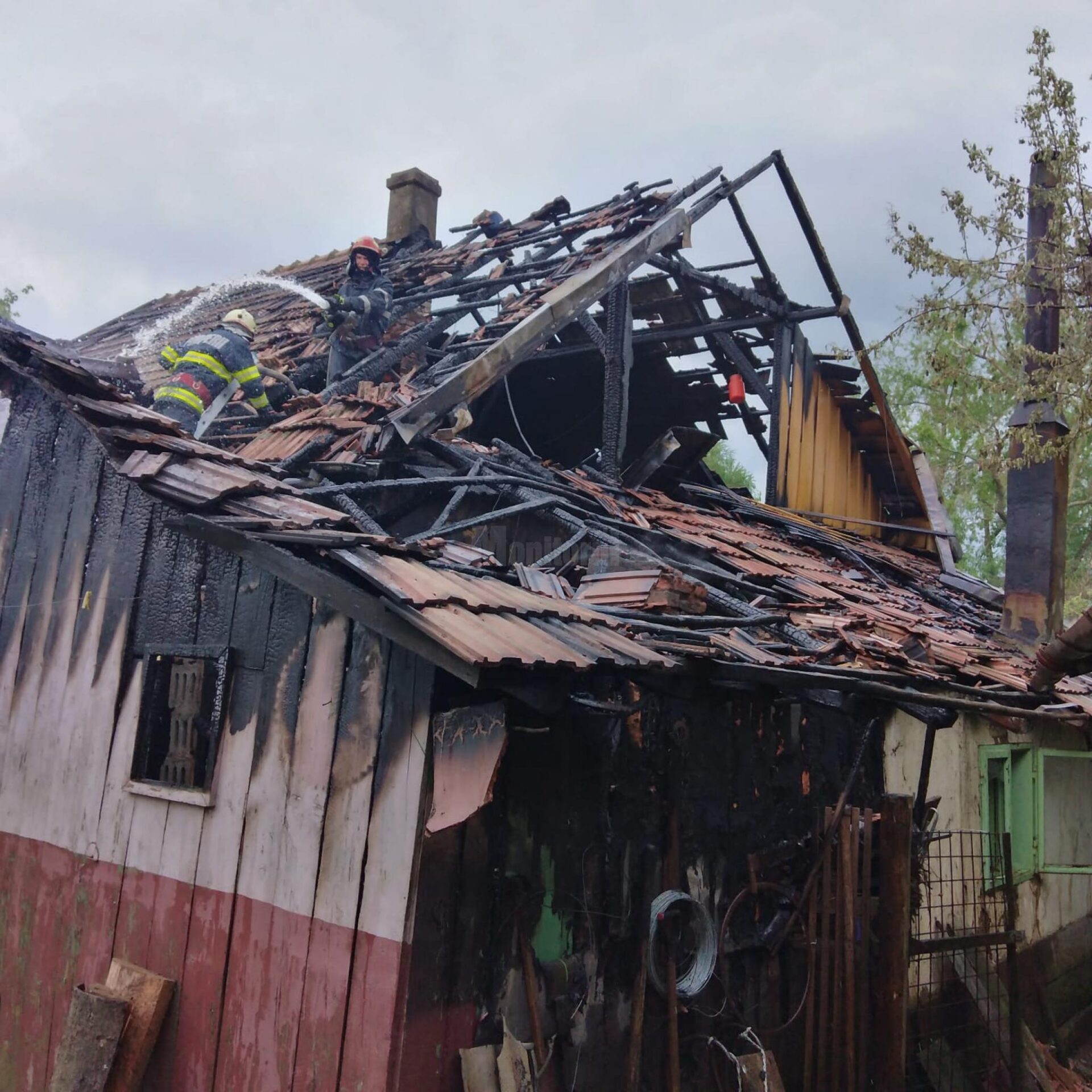 Pompierii interveneau la ora redactării materialului pentru lichidarea ultimelor focare și îndepărtarea elementelor de construcție afectate de foc.