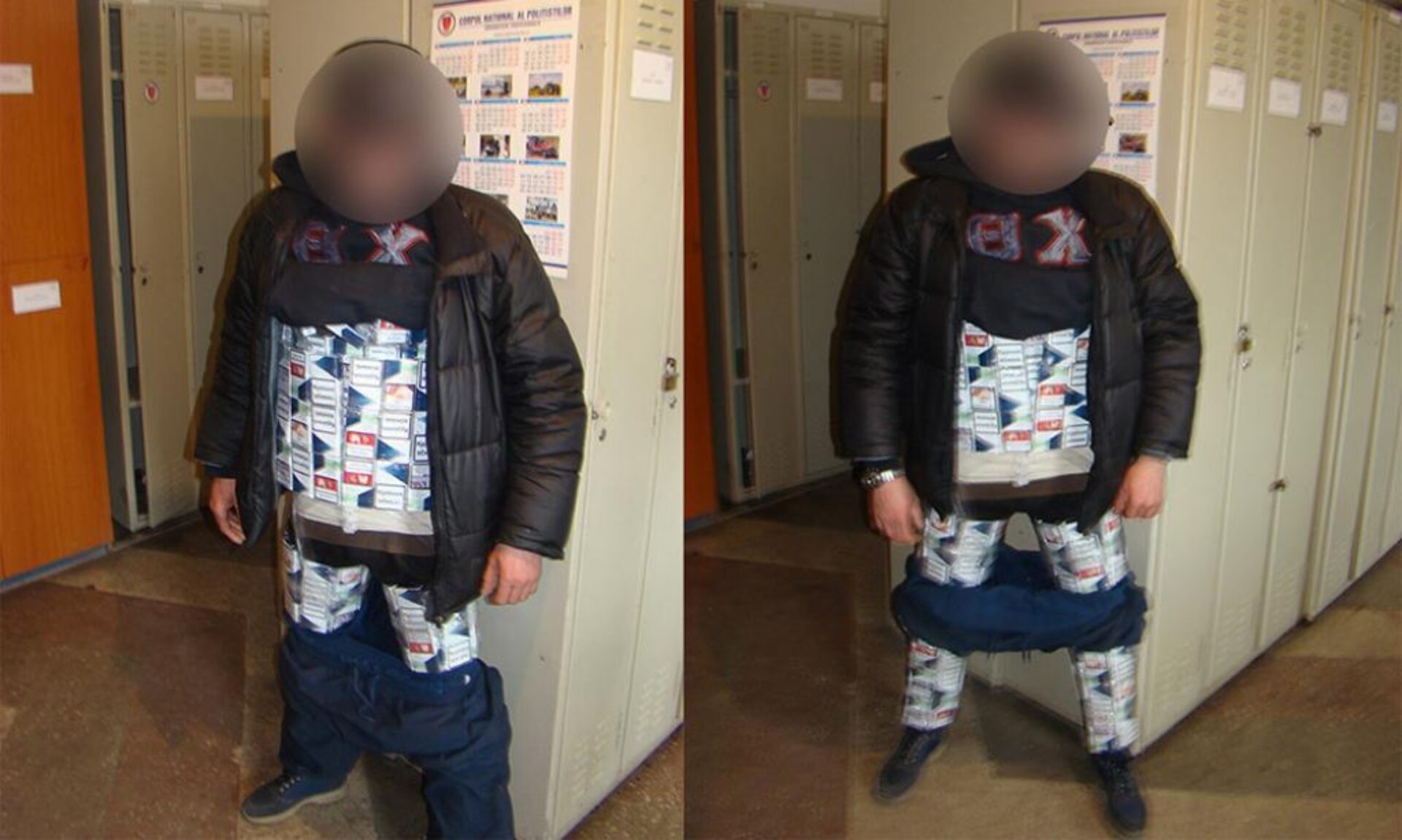 Un bărbat care a încercat să intre în România fără să fie verificat de autoritățile din Punctul de Trecere a Frontierei (PTF) Siret a fost reținut de polițiștii de frontieră. Oamenii legii au avut surpriza să constate că bărbatul avea sub haine o „garnitură” formată din peste două sute de pachete de țigări. Potrivit celor afirmate de ofițerul pentru relații publice de la Poliția de Frontieră Suceava, comisar-șef Ilie Poroch-Serițan, miercuri după-amiază, în jurul orei 15.30, un echipaj al poliției de frontieră a identificat în PTF Siret, în spatele tonetei destinate pentru controlul documentelor, un bărbat suspect care intenționa să evite controlul de frontieră pentru a intra fraudulos în țară, deoarece avea asupra sa produse accizabile peste plafonul vamal. Bărbatul a fost condus la sediul Sectorului Siret unde a fost identificat ca fiind Ilie B., de 47 ani, din comuna Marginea. În urma controlului amănunțit efectuat de lucrătorii de la graniță au fost descoperite, în bagajele personale și ascunse pe corp, 250 de pachete cu țigări de proveniență ucraineană și doi litri de băuturi spirtoase. Produsele accizabile au fost ridicate în vederea confiscării, iar bărbatul este cercetat pentru săvârșirea infracțiunilor de trecere ilegală a frontierei de stat și contrabandă.