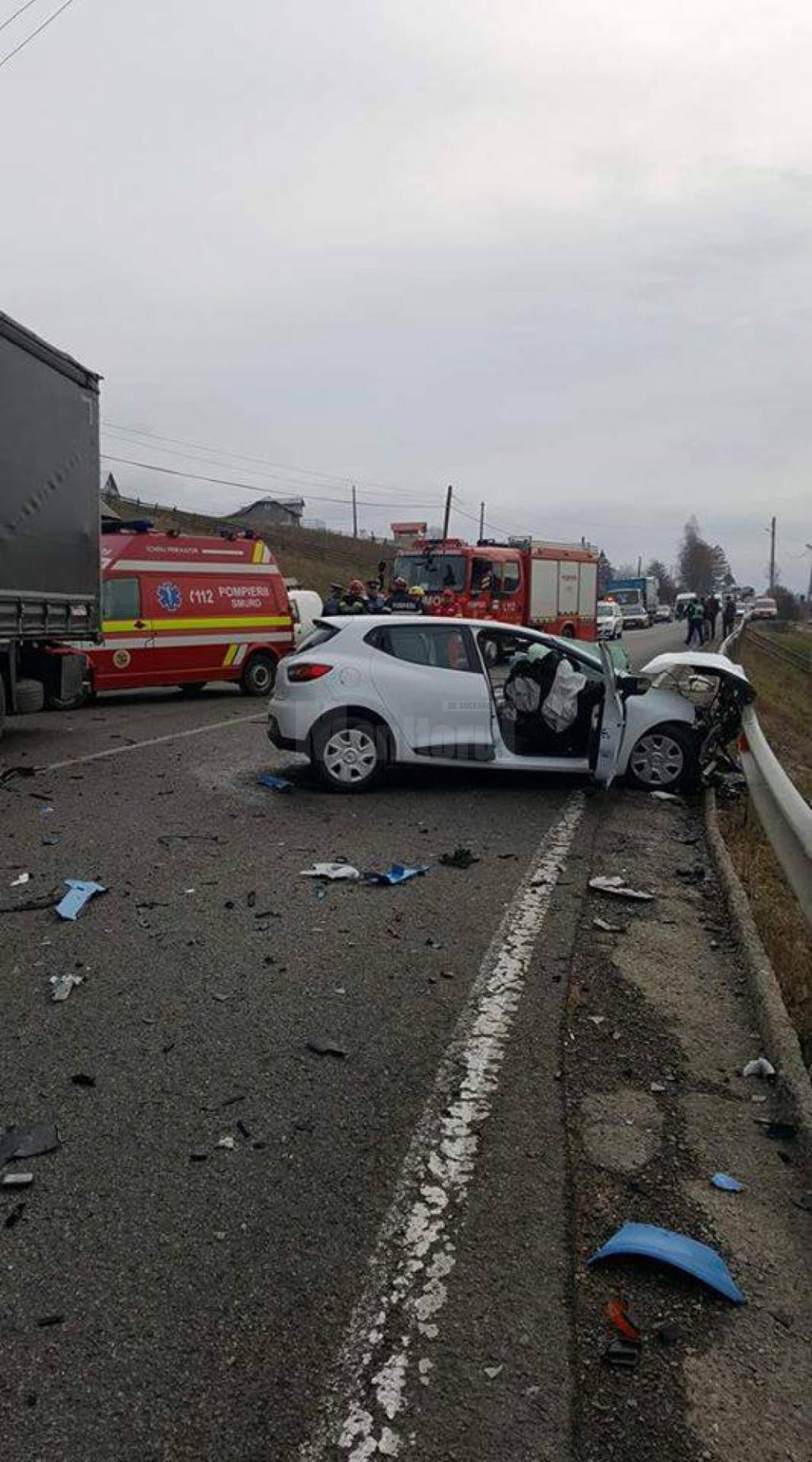 Grav accident de circulație luni dimineață, în localitatea Dealu Floreni, la 12 kilometri de municipiul Vatra Dornei. Un bărbat de 34 de ani a ajuns la spital după ce mașina pe care o conducea a intrat în coliziune frontală cu un autotren. Accidentul a avut loc în jurul orei 09.00, la fața locului fiind nevoie de intervenția modulului SMURD al Detașamentului de Pompieri Vatra Dornei, dotat cu o autospecială pentru descarcerare și o ambulanță SMURD. În urma impactului cu tirul, bărbatul a rămas încarcerat în autoturism, fiind extras de salvatori și stabilizat hemodinamic de paramedici. Aflat în stare de conștiență, cu mai multe traumatisme, bărbatul a fost transportat de urgență la Centrul de Primire Urgențe al Spitalului Vatra Dornei, pentru tratament de specialitate. Circulația pe DN 17 în zonă a fost blocată pentru aproximativ o oră, pentru degajarea drumului și efectuarea măsurătorilor.