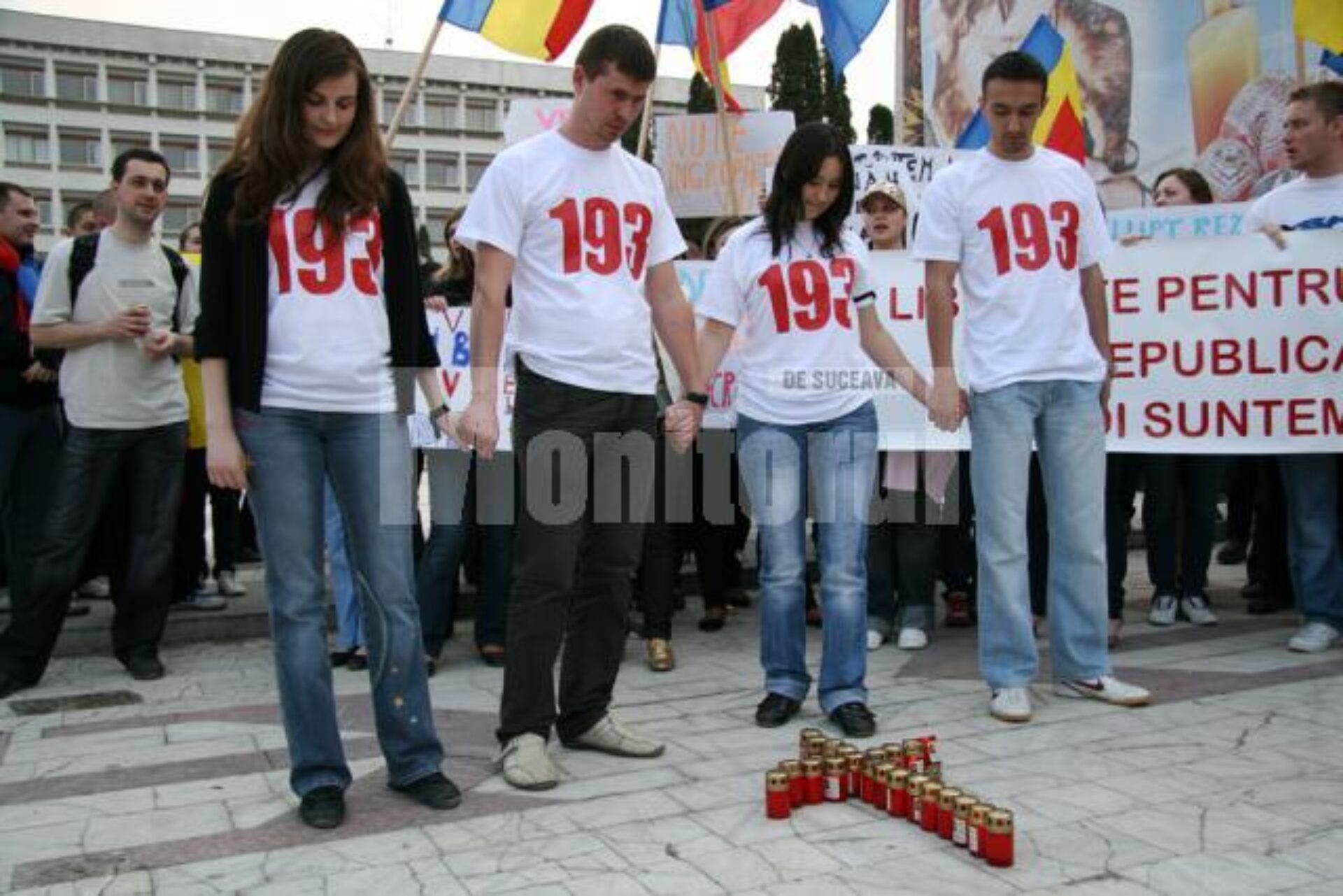 O parte dintre tinerii care au protestat în centrul Sucevei erau îmbrăcați cu tricouri pe care era inscripționată cifra 193, liderul Grupului de Inițiativă al Românilor din Basarabia, Petru Ciolpan, declarând că toți elevii și studenții basarabeni sunt alături de cei care au fost arestați de autoritățile din Moldova, de familiile acestora și de cei care continuă să protesteze în Chișinău.
