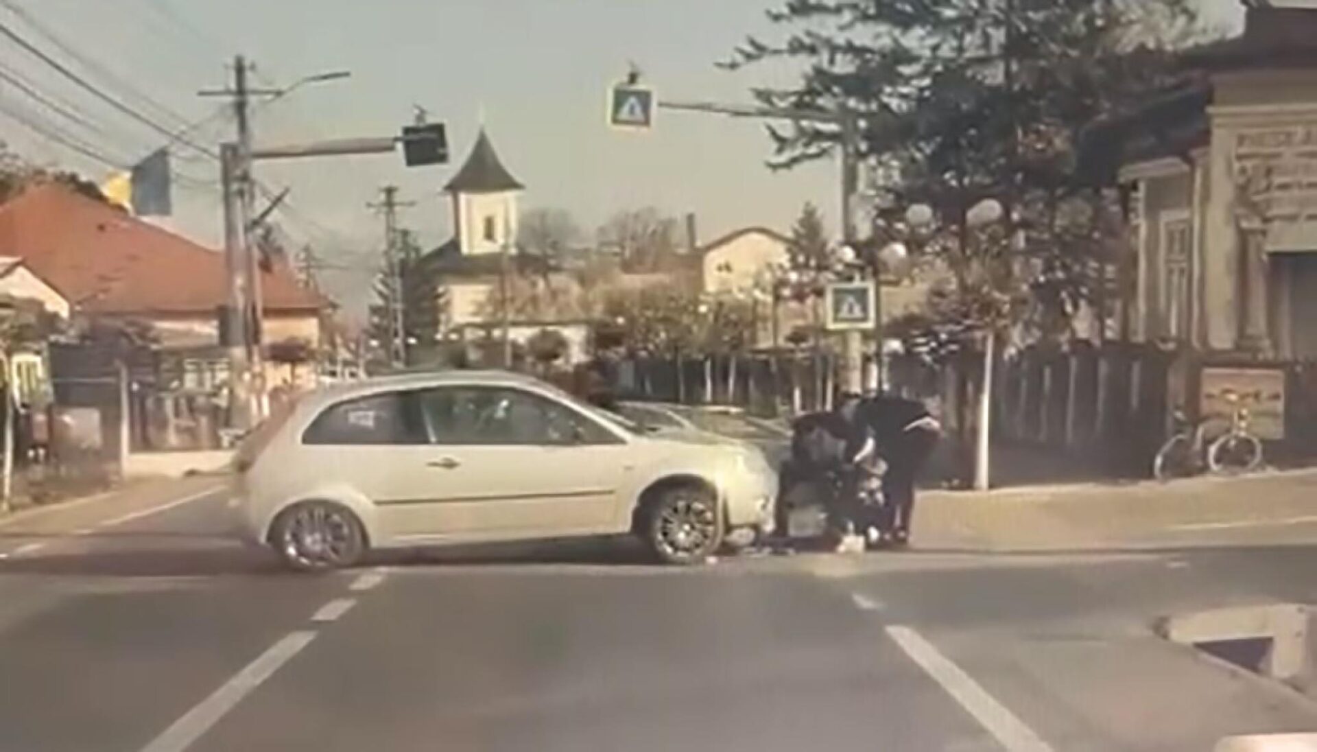 Bătrân în scaun cu rotile, acroșat de o mașină într-o intersecție, la Dumbrăveni