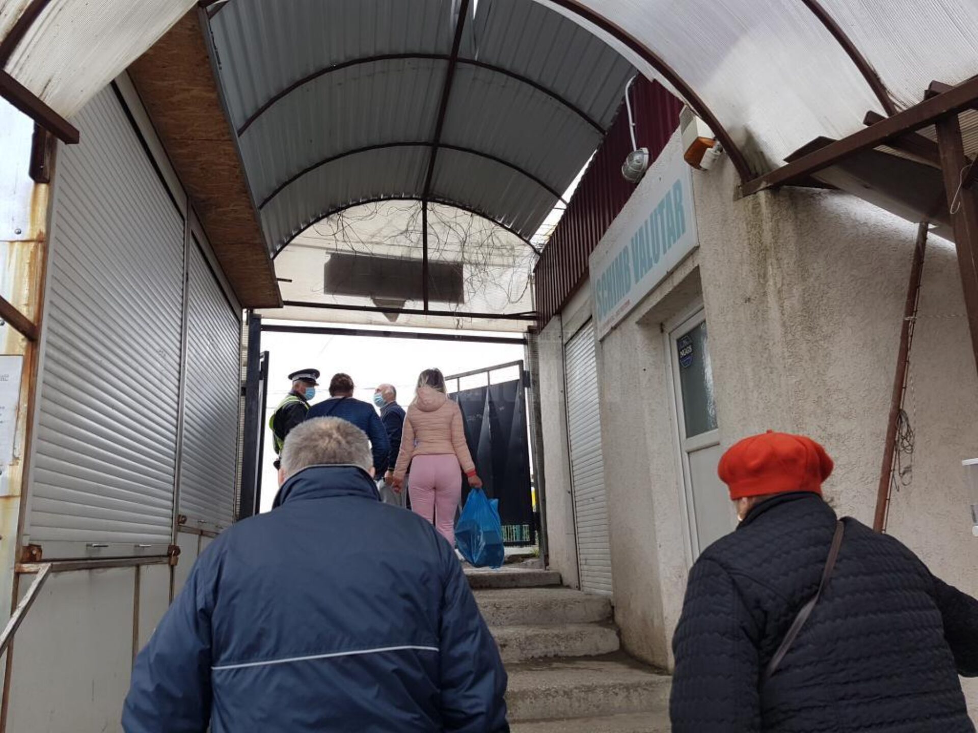 Uneori, la poarta principală se adună și câteva zeci de oameni odată, așteptând încolonați, la distanță unul de celălalt, să li se măsoare temperatura și apoi să treacă prin tunelul cu dezinfectant.
