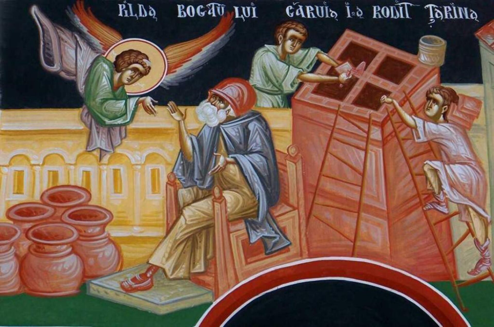 „Zis-a Domnul pilda aceasta: Unui om bogat i-a rodit din belșug țarina. Și el cugeta în sine, zicând: Ce voi face, că n-am unde să adun roadele mele? Și a zis: Aceasta voi face: Voi strica hambarele mele și mai mari le voi zidi și voi strânge acolo toate roadele mele și bunătățile mele; și voi zice sufletului meu: Suflete, ai multe bunătăți strânse pentru mulți ani; odihnește-te, mănâncă, bea, veselește-te. Însă Dumnezeu i-a zis: Nebune! În această noapte vor cere de la tine sufletul tău. Și cele ce ai pregătit ale cui vor fi? Așa se întâmplă cu cel ce-și adună comori pentru sine însuși și nu se îmbogățește în Dumnezeu.” (Luca 12, 16-21, Pilda bogatului căruia i-a rodit țarina)