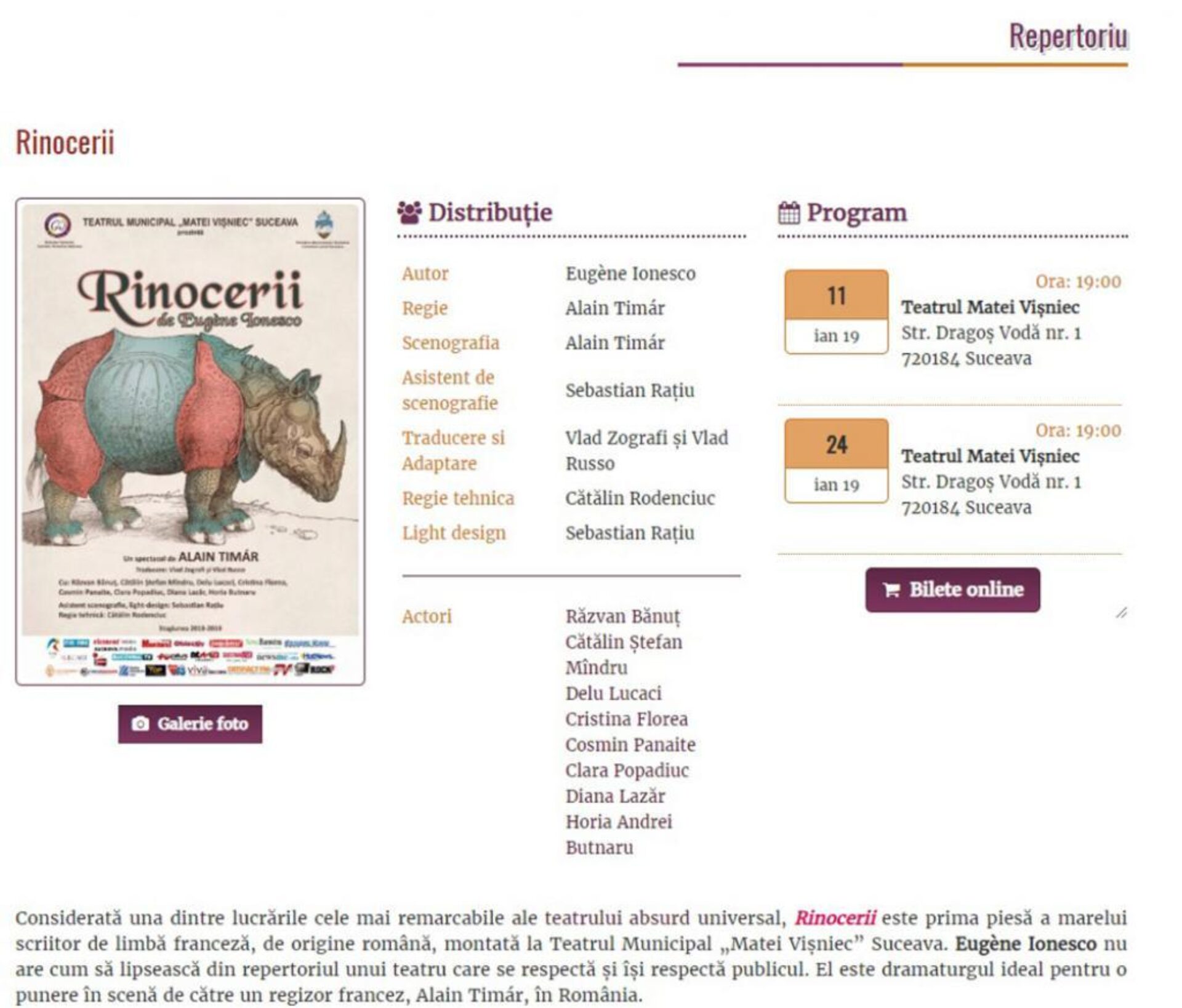 Începând cu 1 ianuarie 2019, Teatrul Municipal „Matei Vișniec” oferă spectatorilor posibilitatea achiziționării de bilete online, prin platforma www.blt.ro.