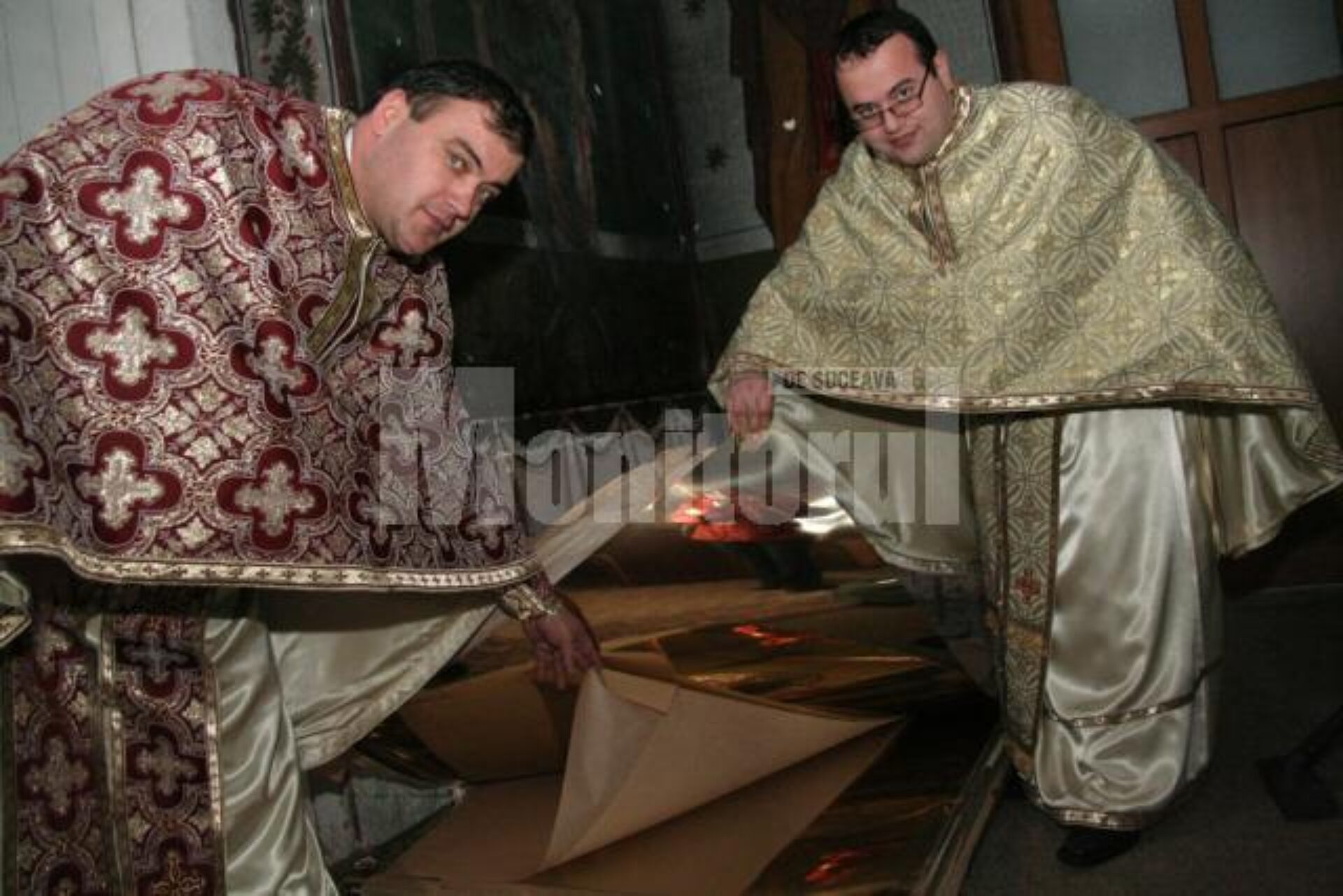 Cei doi slujitori ai bisericii se bazau pe o sumă destul de mare de bani pe care o aveau disponibilă, circa trei miliarde de lei vechi, obținuți pe baza unui proiect de la Ministerul Culturii, cu spijinul fostului președinte al Consiliului Județean Suceava, senatorul Gavril Mîrza. Destinația banilor era pentru schimbarea tâmplăriei, construirea clopotniței și alte investiții la biserică.