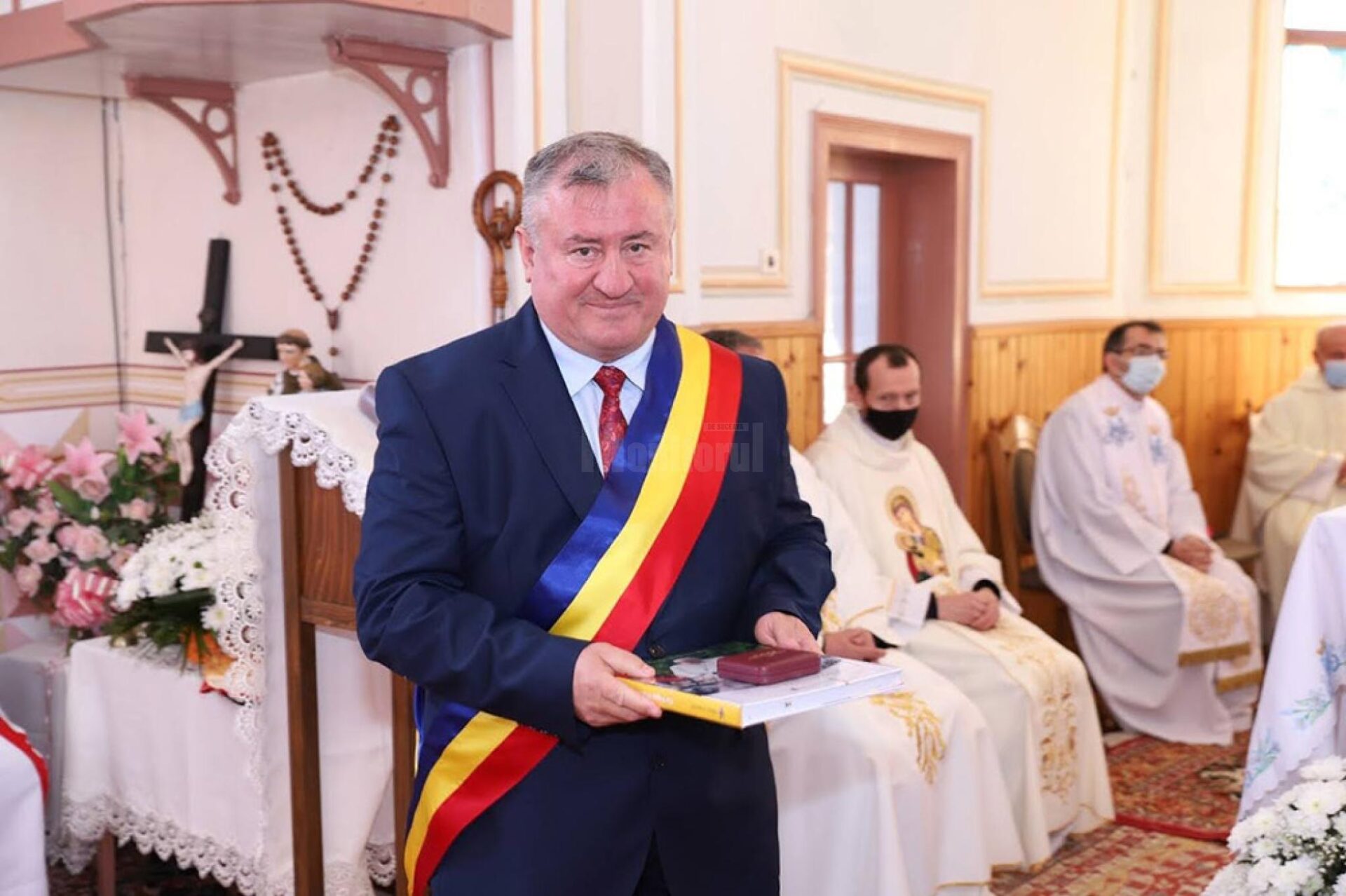 Gheorghe Fron a precizat că în momentul de față în satul Dumbrava locuiesc 16 familii de catolici, care trăiesc în armonie cu cei de credință ortodoxă. Fron a ținut să remarce faptul că multe familii de ortodocși au făcut donații pentru lucrările de la biserica catolică din Dumbrava. El a precizat că primăria a sprijinit Biserica ori de câte ori a fost nevoie, sau în funcție posibilitățile financiare pe care le avea. „Noi, Primăria și Consiliul Local Cornu Luncii, avem o colaborarea foarte bună cu Biserica”, a subliniat Fron. El a mai declarat că tot anul acesta, a alocat fonduri pentru casa parohială din satul Sasca Mare, precum și pentru acoperirea casei de prăznuire de la biserica ortodoxă din Dumbrava. Gheorghe Fron a spus că anul viitor vor fi alocate sume de bani pentru biserica catolică din satul Cornu Luncii, construită de împăratul Austriei Franz Joseph I.