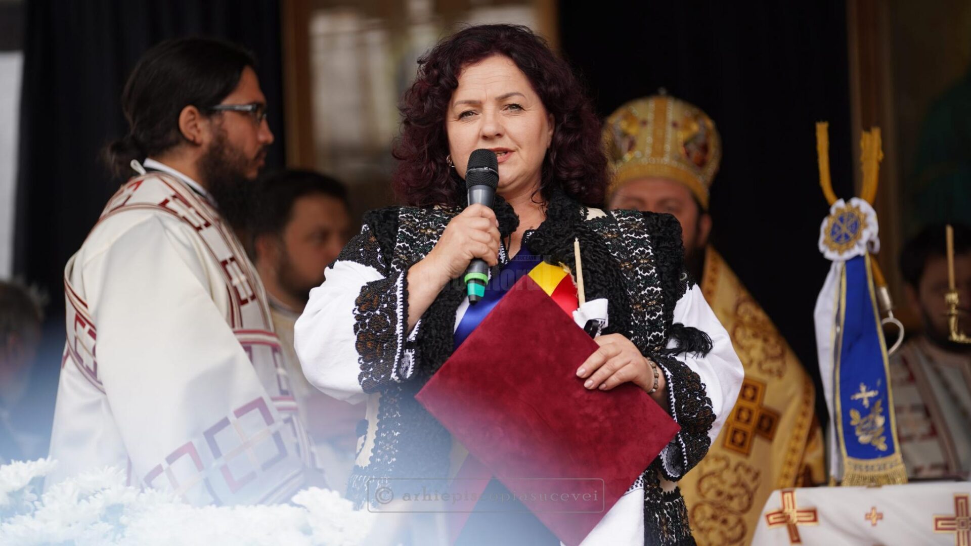 În continuare, pe un podium special amenajat în curtea locașului de cult, cei doi ierarhi au săvârșit Sfânta și Dumnezeiasca Liturghie, înconjurați de un sobor de preoți și diaconi, din care au făcut parte și clerici de la Centrul Eparhial Suceava.