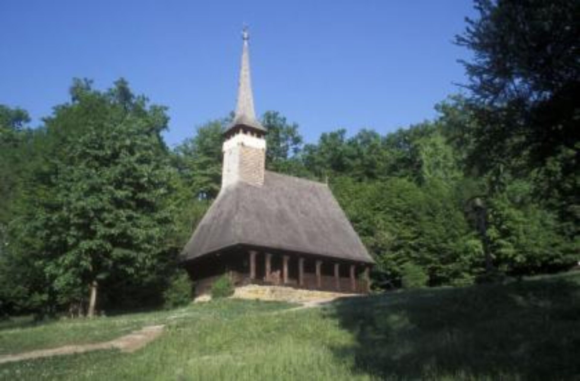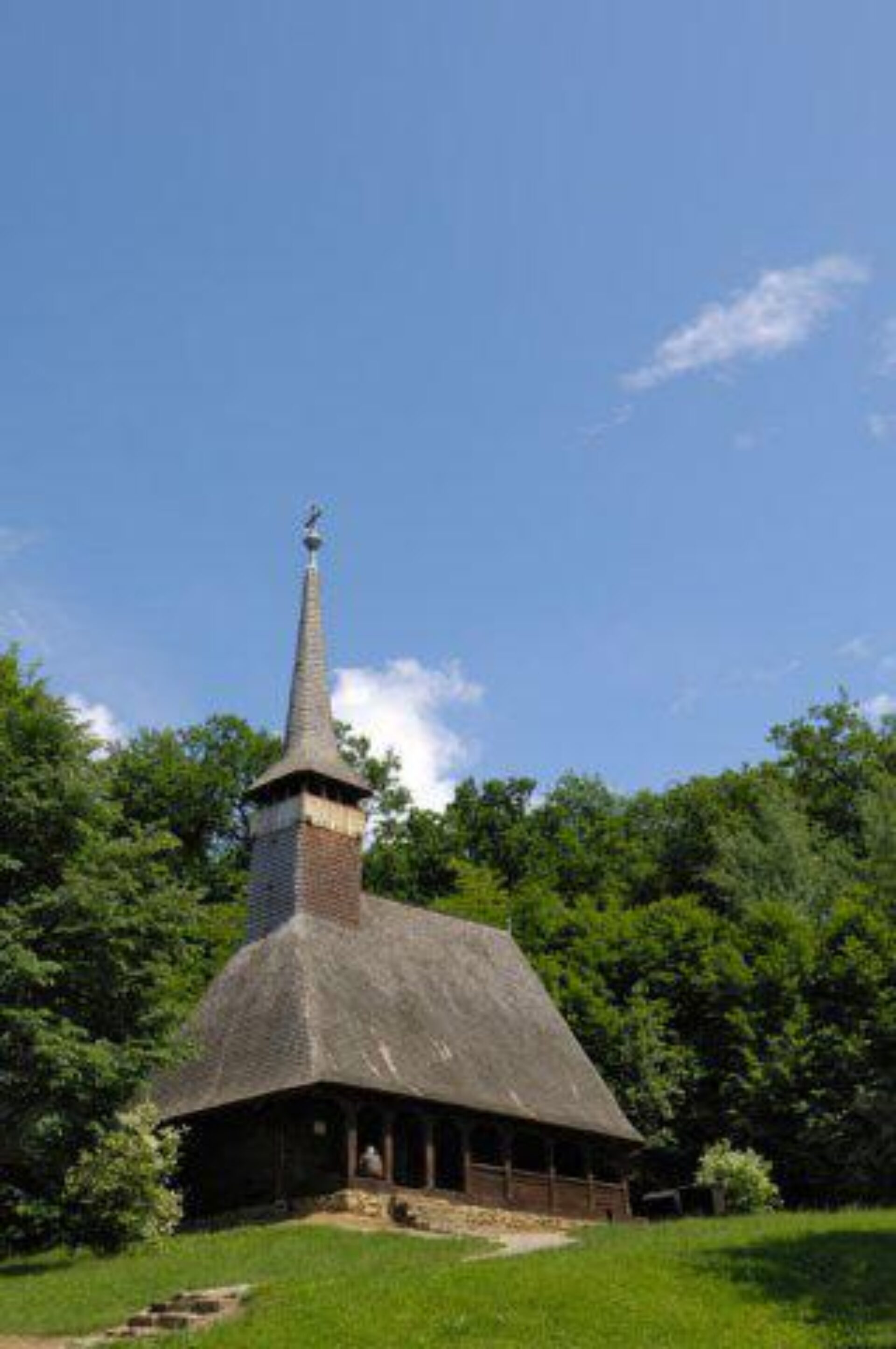 12. Dragomirești, jud. Maramureș – Biserica Adormirea Maicii Domnului, ridicată în anul 1722, poate fi admirată la Muzeul Satului din București. Plan rectangular, absidă decroșată și poligonală. Pridvor spațios.