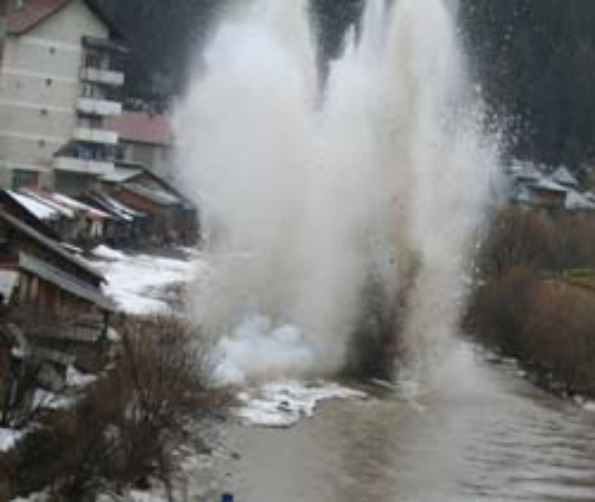 Imediat la intrarea în Vatra Dornei începe imperiul ghețurilor. Blocuri gigant care cântăresc multe tone sunt înghesuite pe aproape 2 kilometri și gâtuie apele Bistriței. Tocmai din acest motiv, pirotehniștii de la Inspectoratul pentru Situații de Urgență Suceava, ajutați de salvamontiștii dorneni și artificieri de la Min Bucovina au început ieri dimineață munca de spargere a blocurilor de gheață. După aproximativ două ore de muncă în mai multe găuri săpate cu drujba în gheața groasă de aproape un metru au fost amplasate pachete de dinamită. Avertizați de polițiști prin stație, localnicii au deschis geamurile locuințelor și apoi au asistat de la distanță la spectacolul bubuiturii. Prima detonare a avut loc în jurul orei 12.00, iar dinamita a fărâmițat suprafața unde a fost amplasată, fără a antrena în aval și celelalte sloiuri, așa cum sperau toți cei prezenți la fața locului. „Aplicăm politica pașilor mărunți. Din aproape în aproape până vom reuși să spargem întregul zăpor. Asta e!”, a spus unul dintre cei implicați în operațiunea de detonare. Fără a fi expert, trebuie spus că acțiunea va mai dura cel puțin câteva zile și aceasta pentru că pirotehniștii au de pus în mișcare zeci de mii de tone de gheață numai de la intrarea în Vatra Dornei. Situația nu este mai optimistă nici pe cursul superior al Bistriței, la Cârlibaba, unde pirotehniștii au, de asemenea, de spart o aglomerare de gheață de câteva sute de metri, cea care a inundat gospodăriile sătenilor de aici.