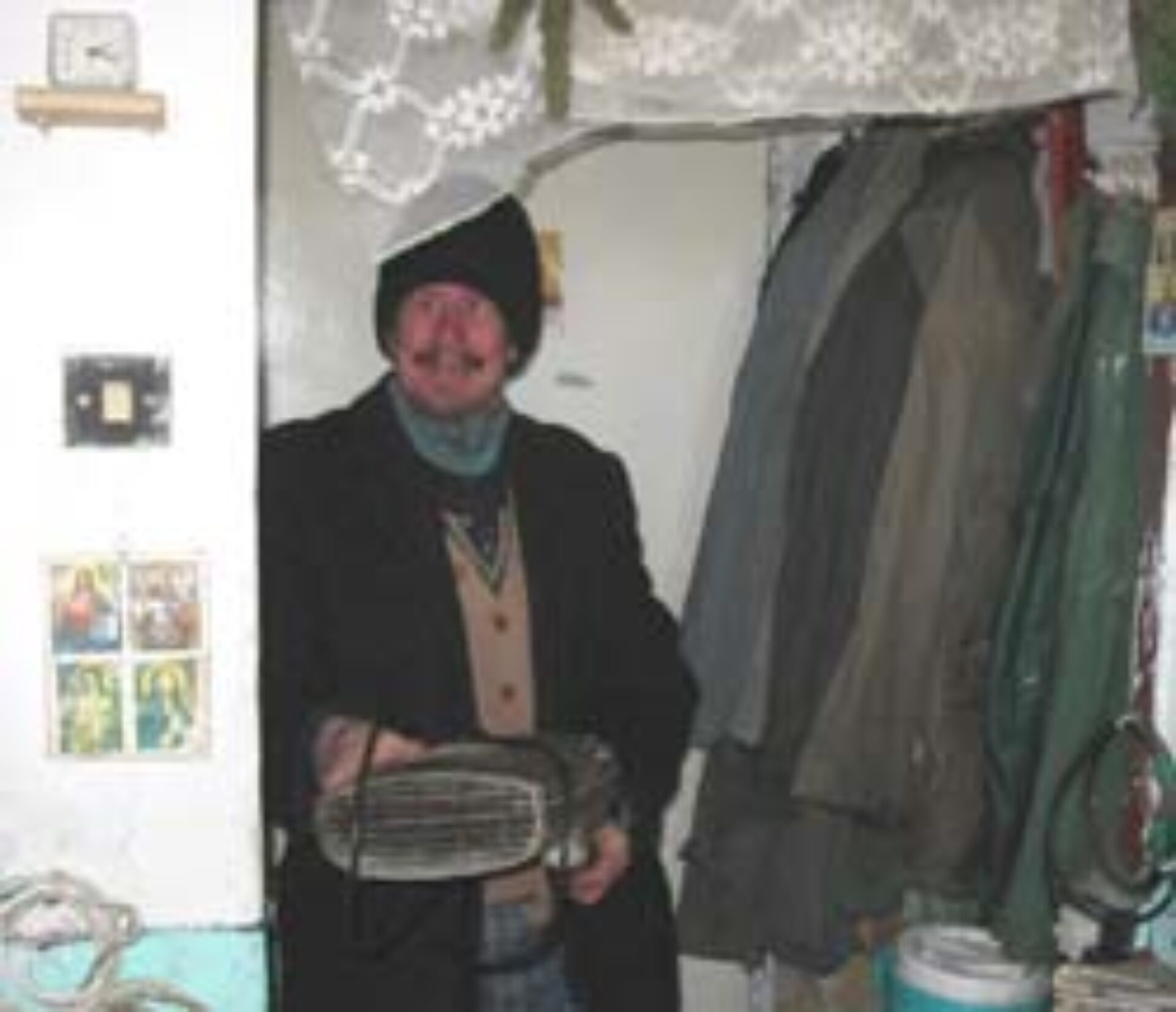 Ilie Ban râde atunci când îl întrebi de încălzire. Îmbrăcat cu o grămadă de zdrențe și cu căciula trasă bine peste urechi și pe frunte, lasă să i se vadă doar ochii ce privesc pieziș și dinții înnegriți și măcinați de carii. Un strat de fum îi acoperă pereții cămăruței în care locuiește și care pare un depozit de materiale, adunate de-a lungul timpului. Mândru, îmi arată radiatorul cu care se încălzește atunci când frigul îl biruie cu totul. E la fel de vechi ca și pozele lipite pe pereți, pare o rablă aruncată de cineva la gunoi.
