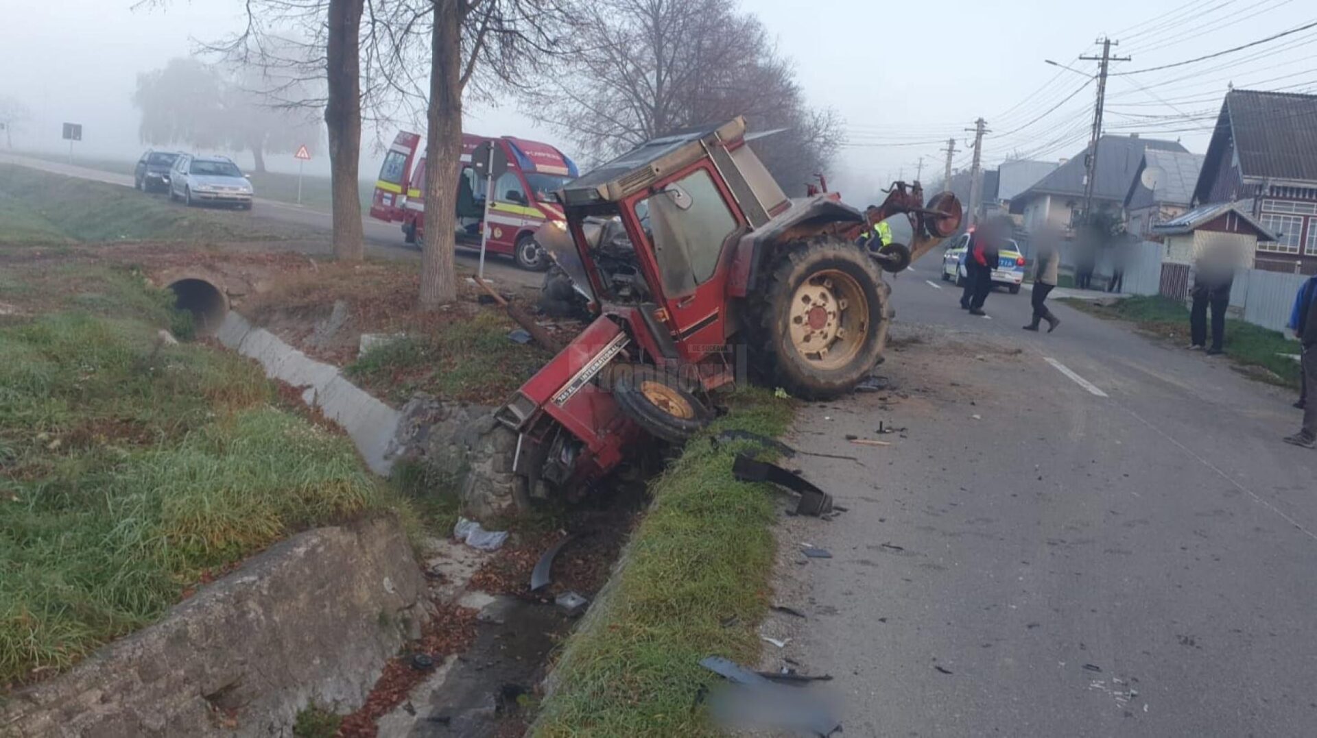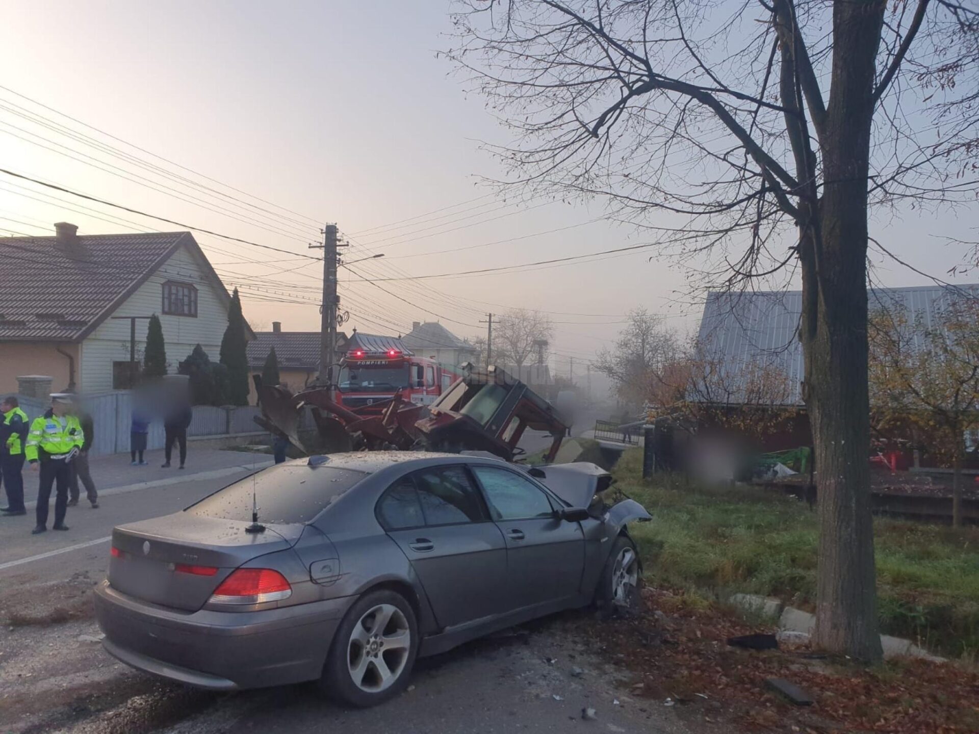 Un autoturism marca BMW a fost făcut praf după o manevră greșită efectuată de un bărbat care conducea un tractor. Accidentul a avut loc marți, la primele ore ale dimineții, la Pârteștii de Sus, în comuna Cacica, și a fost influențat de faptul că afară era ceață densă.