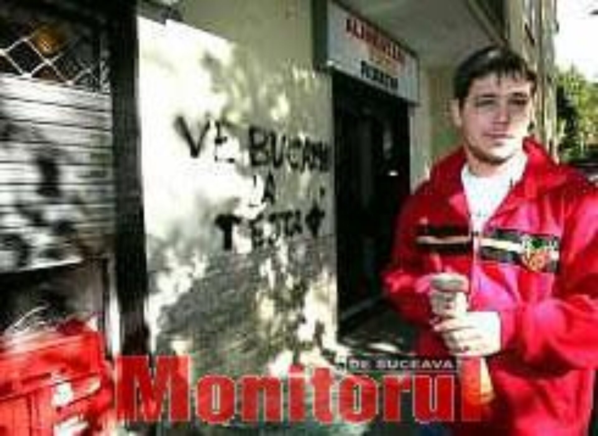 Autorii atacului au lăsat scris cu spray „Vă spargem capetele”, iar pe un perete al magazinului a fost desenată o cruce celtică.