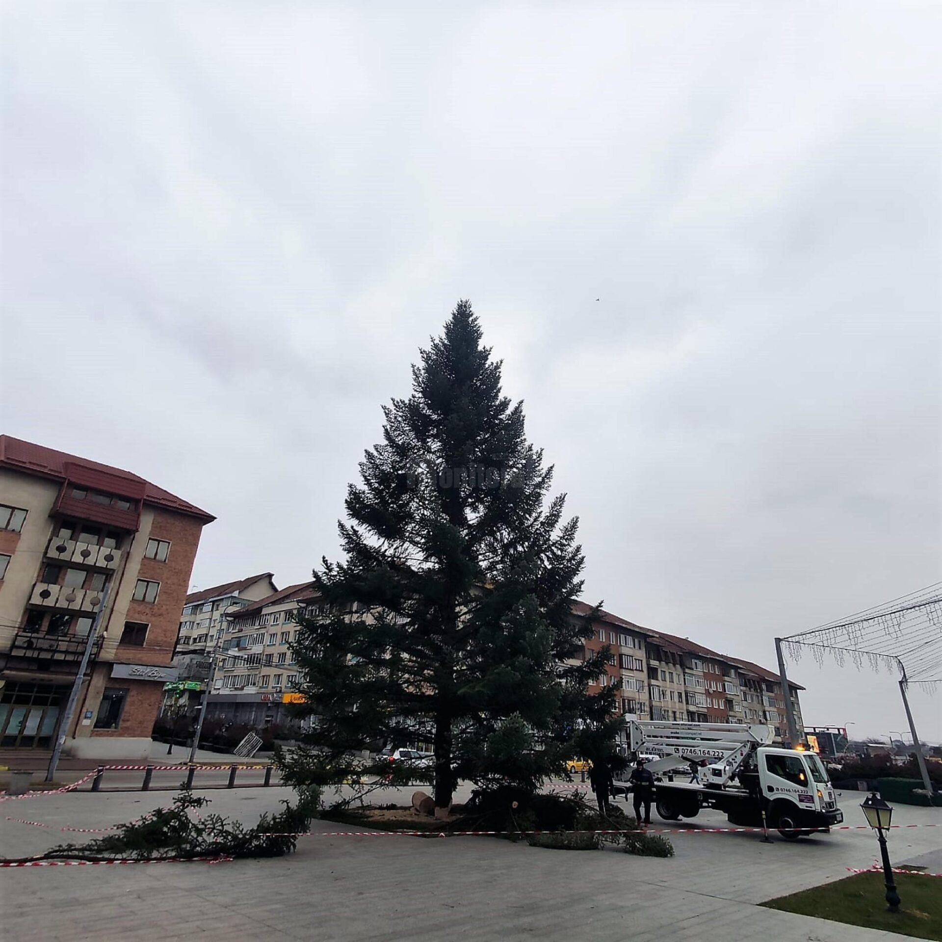 În centrul municipiului Suceava și-a făcut deja apariția tradiționalul brad pentru sărbătorile de iarnă 2