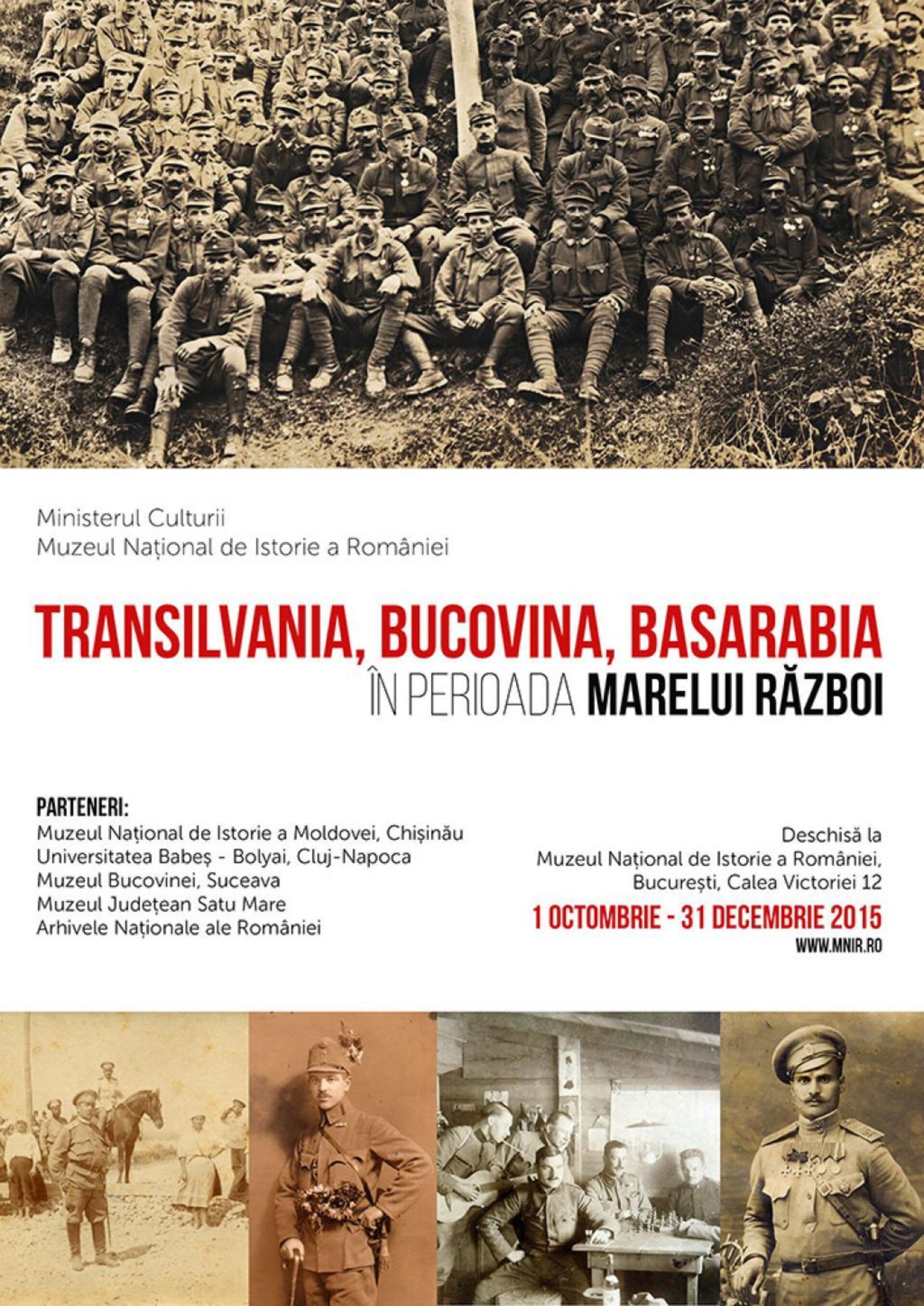 Muzeul Național de Istorie a României (MNIR) din București prezintă, de la data de 1 octombrie, expoziția foto-documentară cu genericul „Transilvania, Bucovina și Basarabia în perioada Marelui Război”, proiect realizat de MNIR în colaborare cu Muzeul Național de Istorie a Moldovei (Chișinău), Universitatea Babeș – Bolyai (Cluj-Napoca), Muzeul Bucovinei (Suceava), Muzeul Județean Satu Mare și Arhivele Naționale ale României.