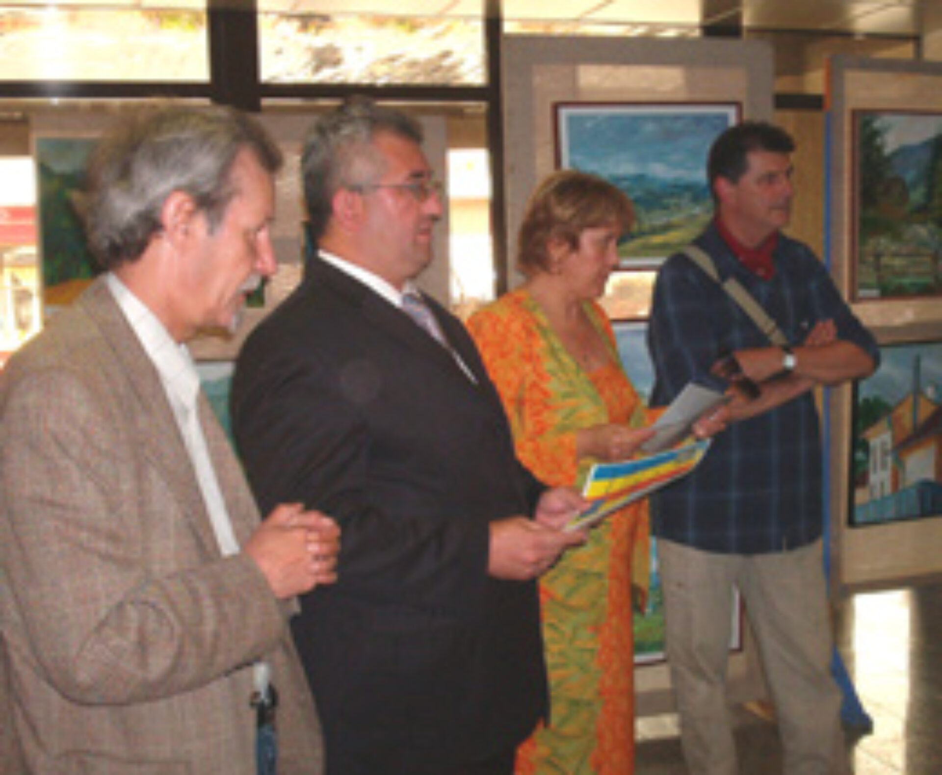 În holul Primăriei Municipiului Suceava a avut loc ieri, la ora prânzului, vernisajul expoziției Taberei internaționale de creație plastică, care s-a desfășurat în intervalul 24 iunie – 4 iulie a.c., sub genericul „Bucovina – trecut, prezent și viitor”. Organizată, așa cum a subliniat atât inițiatorul taberei, prof. Ioan Bodnar, președintele Uniunii Ucrainenilor din România -Ținutul Bucovina, consilier cu probleme de minorități în cadrul Prefecturii Suceava, cât și cei doi prezentatori, jupânu’ Roman Istrati și graficianul Mihai Pânzaru PIM, de către organizația etnicilor ucraineni bucovineni cu sprijinul Primăriei Municipiului Suceava, al Liceului Particular nr. 1 și al Pensiunii „Casa Albă” din Vama, tabăra, care a reunit 10 creatori, 5 din străinătate (Irina Kopeikina din Letonia, Fedir Svistilnik din Belarus, Mekola Ovsiiko și Anatoli Fedirko din Ucraina și Alexander Drobaha din Republica Moldova) și 5 suceveni (Ioan Bodnar, Anghel-Vasile Siminiuc, Ioan Coțofan, Radu Bercea și Mihai Pânzaru PIM) și-a propus să promoveze imaginea Bucovinei. Proiectul, care s-a împlinit prin lucrările plastice care alcătuiesc expoziția, nu se încheie odată cu prezentarea lor pe simezele sucevene, ci continuă pe un traseu care marchează (cel puțin până la această dată) orașele Cernăuți, Ivano Frankivsk, Kiev, și probabil Odesa (din Ucraina), Riga (din Letonia) și Chișinău (din Republica Moldova). La vernisajul la care au participat primarul Ion Lungu, viceprimarul Angela Zarojanu și consilierul local Viorel Seredenciuc, au fost prezenți alături de artiștii expozanți (între care doar doi din invitații străini, Mekola Ovsiiko și Alexander Drobaha, ceilalți luând deja calea întoarcerii către casă) numeroși iubitori de frumos, precum și reprezentanți ai presei, atât ai celei sucevene, cât și o echipă de la TVR Iași. Primarul Ion Lungu, ca organizator și ca gazdă, a subliniat faptul că Primăria Suceava și el personal sprijină acțiunile culturale, iar viceprimarul Angela Zarojanu, care a apreciat lucrările expuse, a spus că „arta face casă bună cu celelalte activități ale instituției”. Desigur că „pionul” principal al acțiunii, prof. Ioan Bodnar, a prezentat pe scurt modul în care s-a desfășurat programul taberei și faptul că pe parcursul a zece zile, în care artiștii participanți s-au aflat într-o „comuniune spirituală”, s-au realizat peste 40 de lucrări care vor promova imaginea Bucovinei în lume. Un motiv pentru poetul Ion Cozmei de a-și exprima poziția față de această acțiune prin următorul catren: „Tot admirând de-a lungu’ și de-a latu’ / Văd Bucovina prinsă-ntr-un chenar / Mykola și Alexandru poartă har / Dar omul-plenner este-un om de statu:/ Român-ucraineanul Ioan Bodnar”.