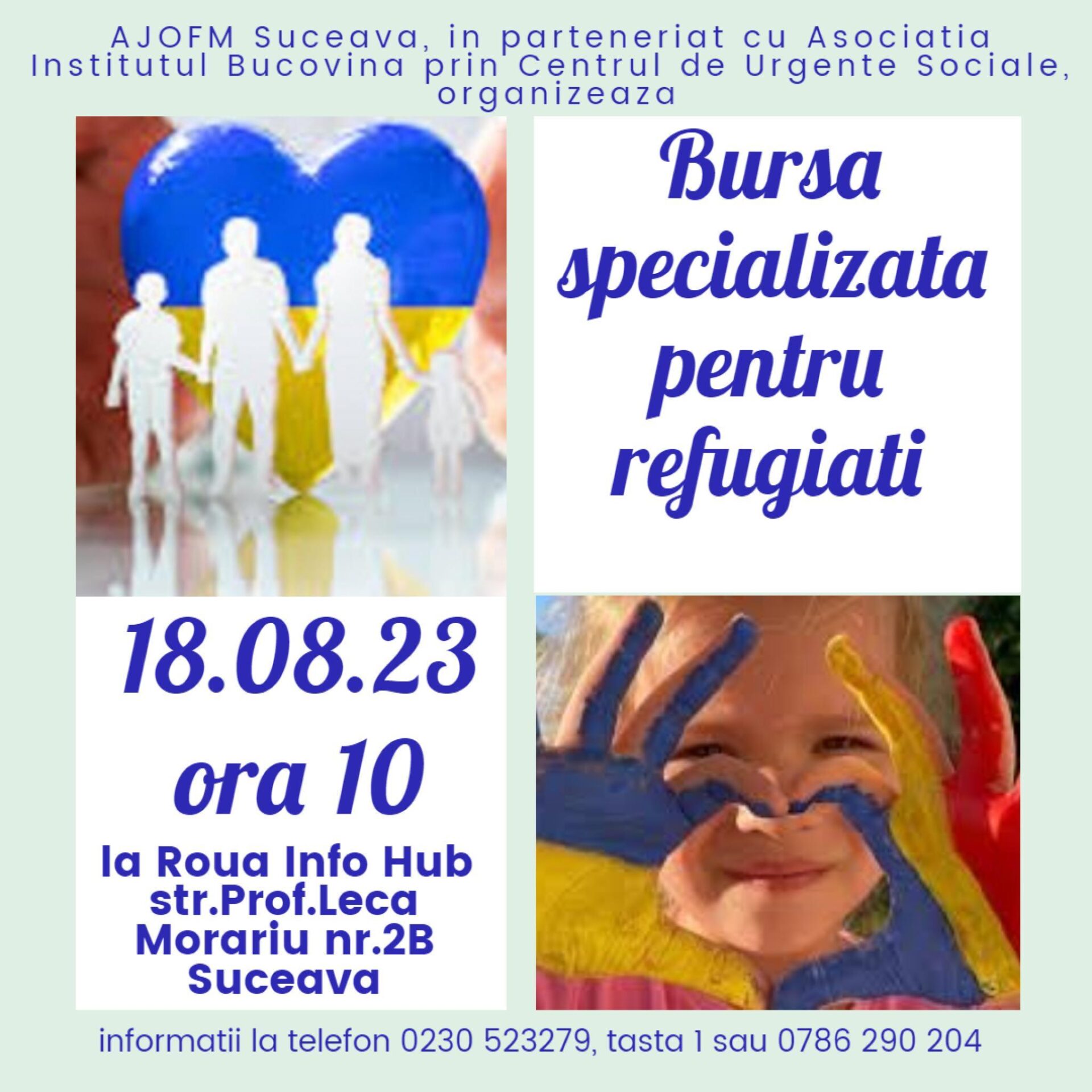 Agenția Județeană pentru Ocuparea Forței de Muncă (AJOFM) Suceava, în parteneriat cu Asociația Institutul Bucovina, organizează vineri, 18 august, Bursa locurilor de muncă pentru refugiați, eveniment dedicat în special refugiaților ucraineni, dar nu numai.