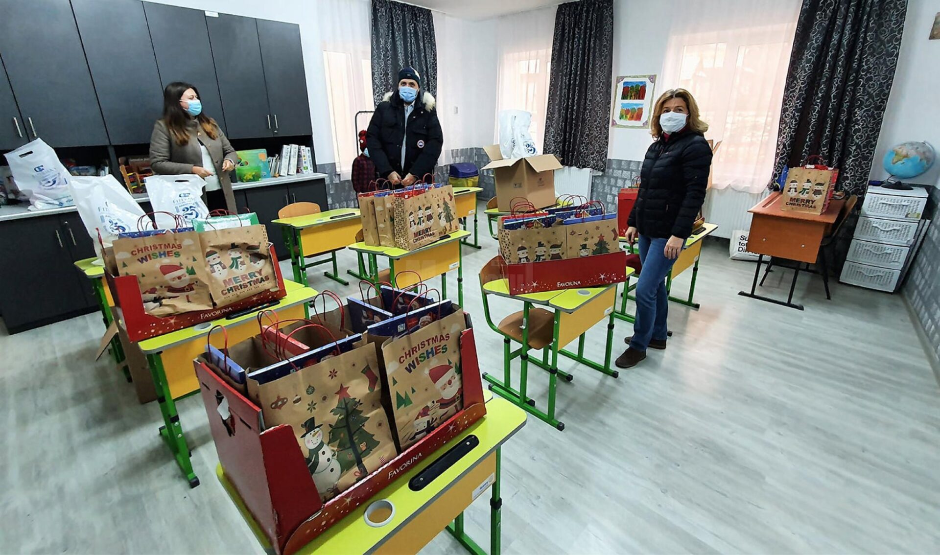Cofetarii pasionați de la Saveurs au îmbinat cu măiestrie cele mai alese ingrediente naturale și le-a pregătit copiilor ciocolată și caramele artizanale. Prietenii de la Fiterman Pharma au adăugat suplimente alimentare, vitamine și dezinfectanți, atât de utili în această perioadă prin care trecem. Alături de ei a fost și Ecuator Holding, care a completat cadourile cu diverse dulciuri.
