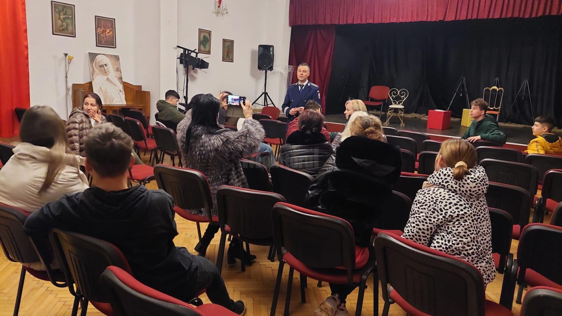 Polițiștii le-au vorbit tinerilor despre anturajul și tentația elevului de a face lucruri care să capteze atenția grupului din care fac parte și să le valideze importanța în colectivul ales (ex: consumul de substanțe interzise, adoptarea unei atitudini agresive), aspecte ce țin de răspunderea penală, dar și de sfera victimizării minorilor și consecințele unor comportamente neadecvate.