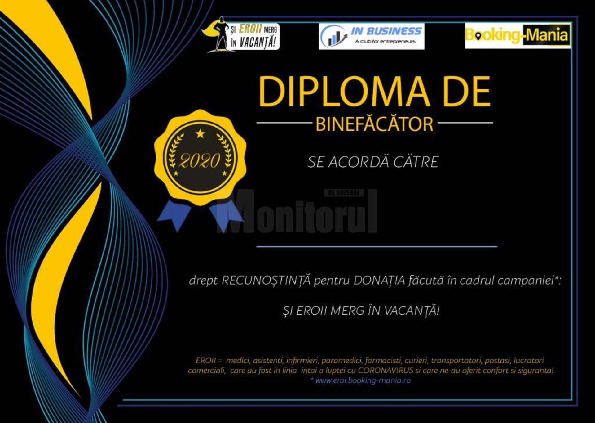 Campania ”Și eroii merg în vacanță” a fost inițiată de către platforma de turism cu origini sucevene Booking-Mania (www.booking-mania.ro), în parteneriat cu clubul de afaceri InBusiness Club din Suceava (www.inbusiness.club).