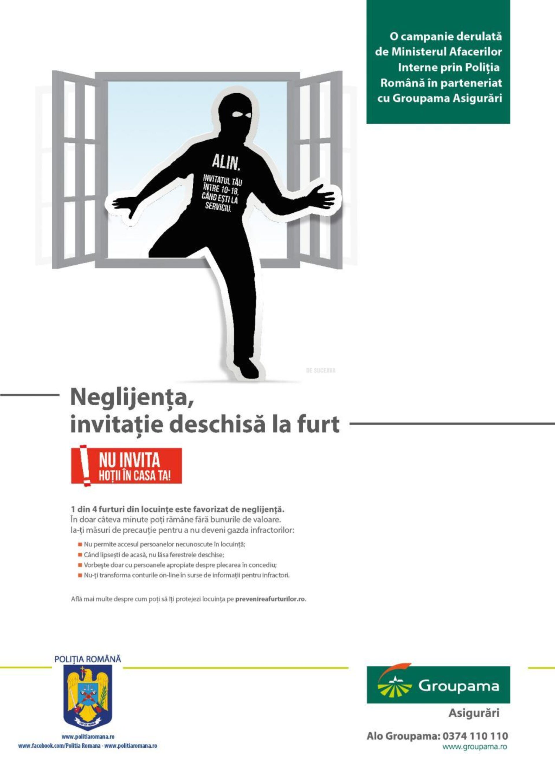 În acest context polițiștii suceveni implementează campania de prevenire a furturilor din locuințe „Neglijența – Invitație deschisă la furt”.